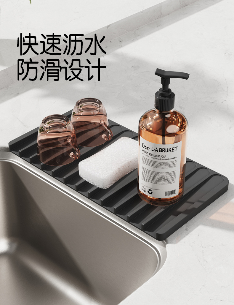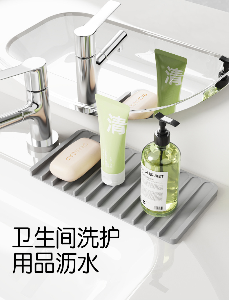 跨境简约硅胶水龙头沥水垫卫生间厨房防滑肥皂架口杯水台面置物垫