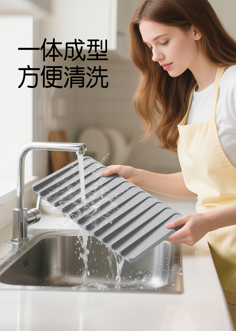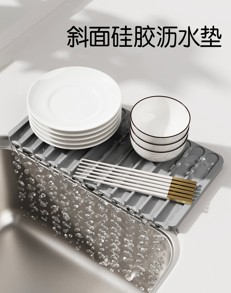 跨境硅胶沥水垫可折叠餐具架碗碟干燥垫厨房柜台防滑隔热排水垫子