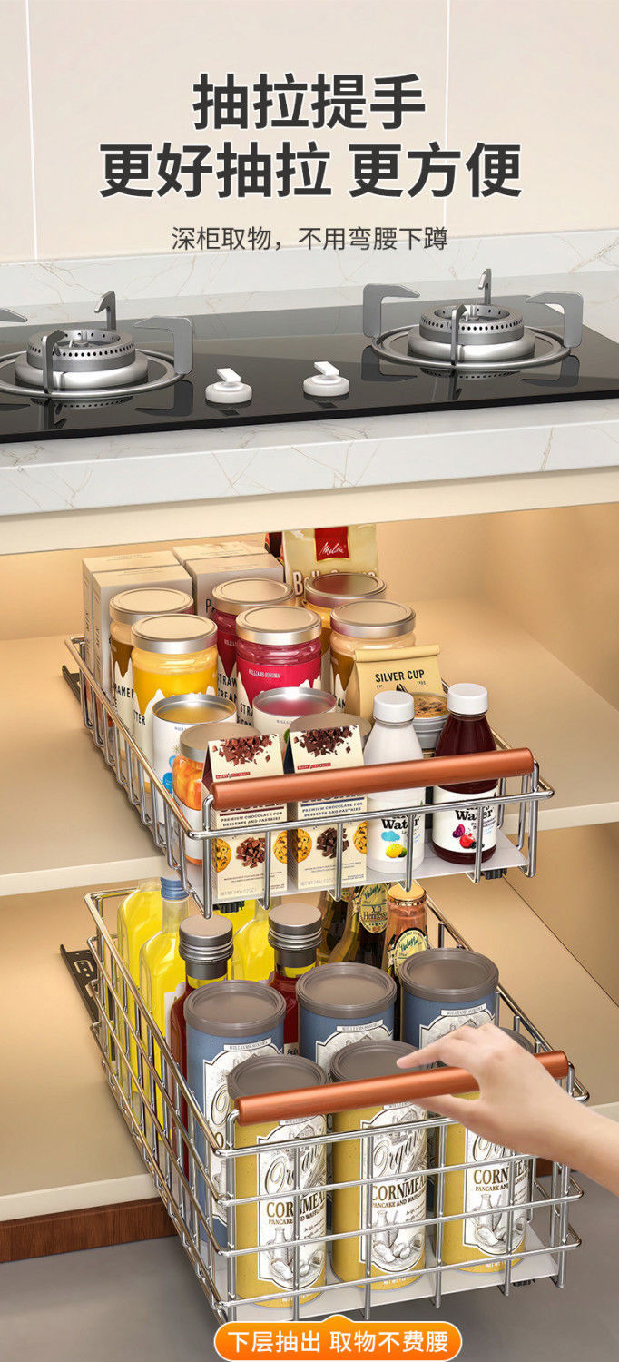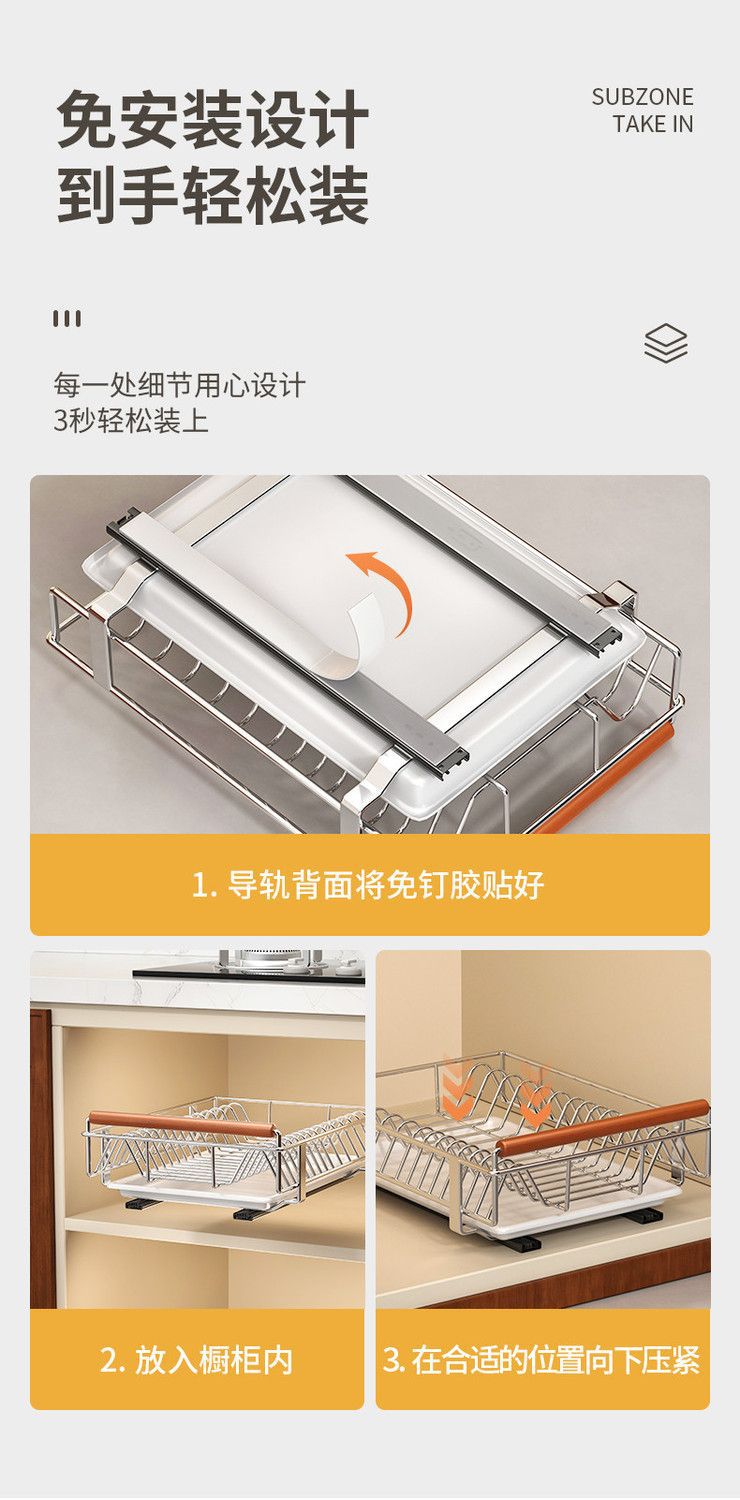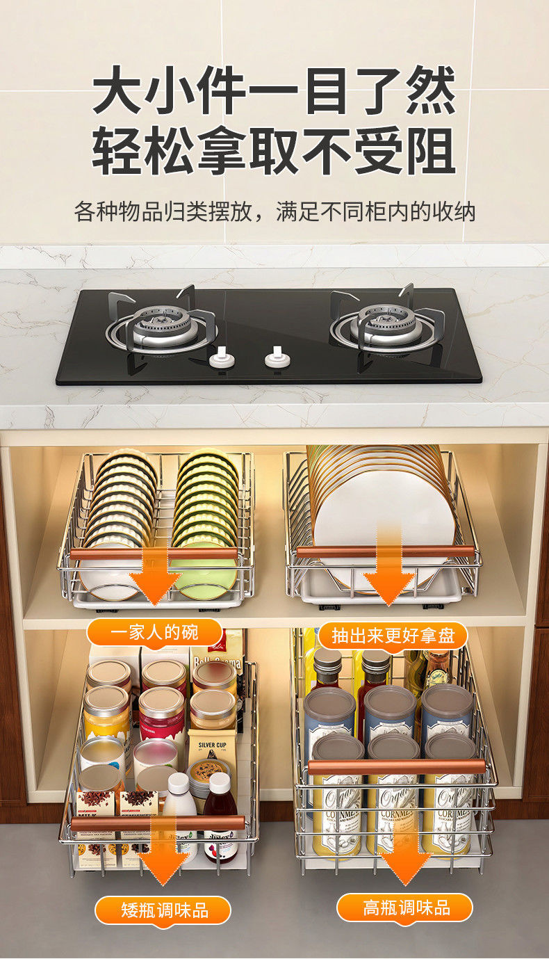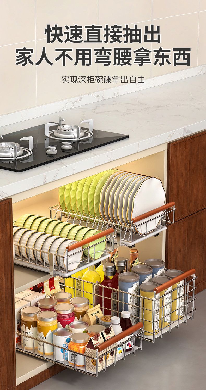 不锈钢厨房碗盘架抽拉碗碟收纳架下橱柜拉篮抽屉式盘子沥水置物架