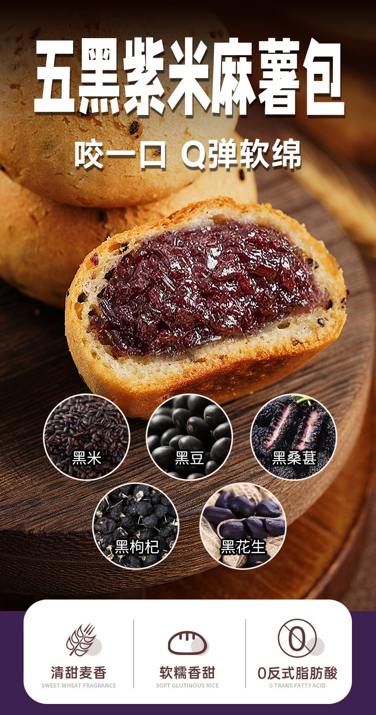 紫米麻薯球面包整箱早餐五黑三明治山糕姆点健康解饿零食品小吃