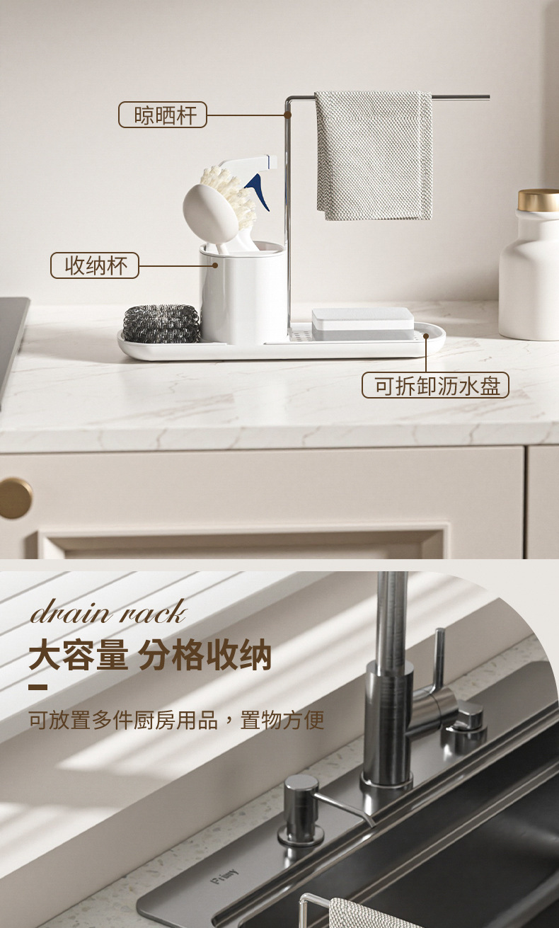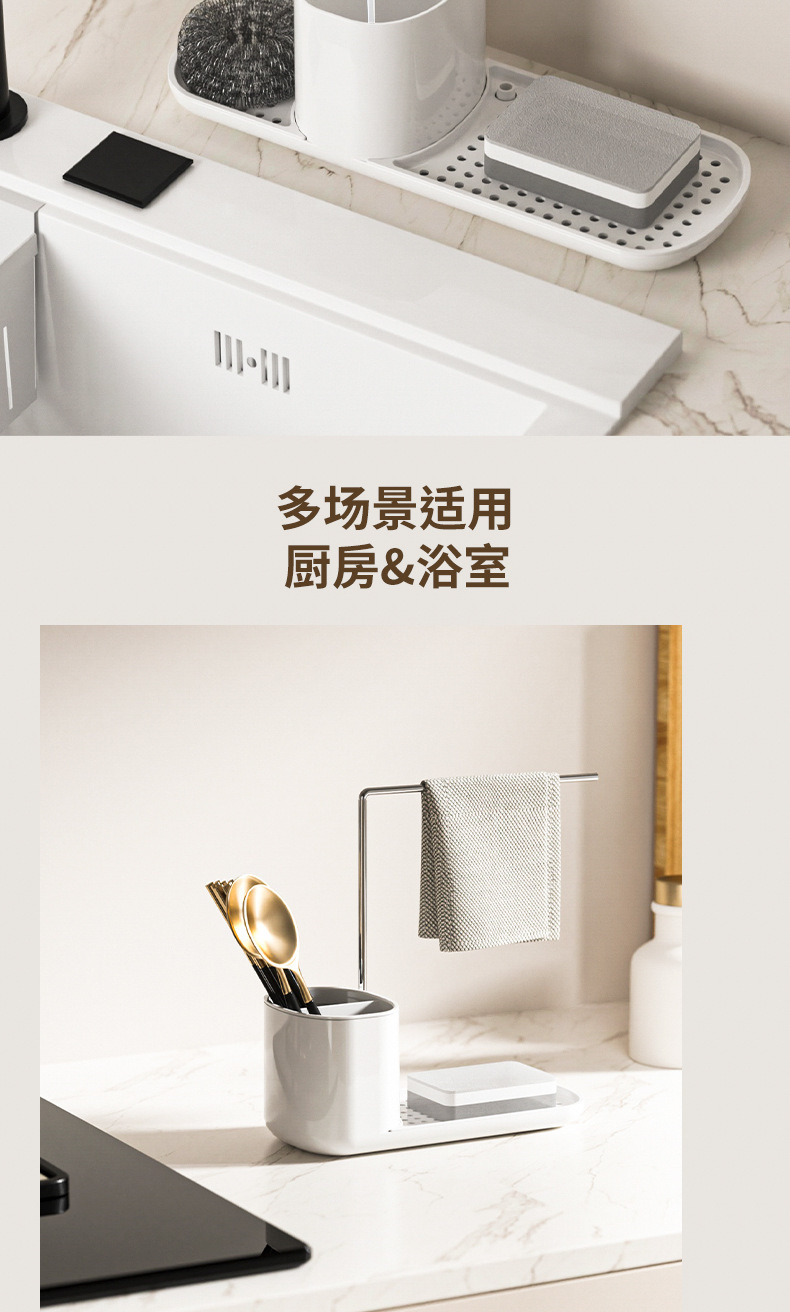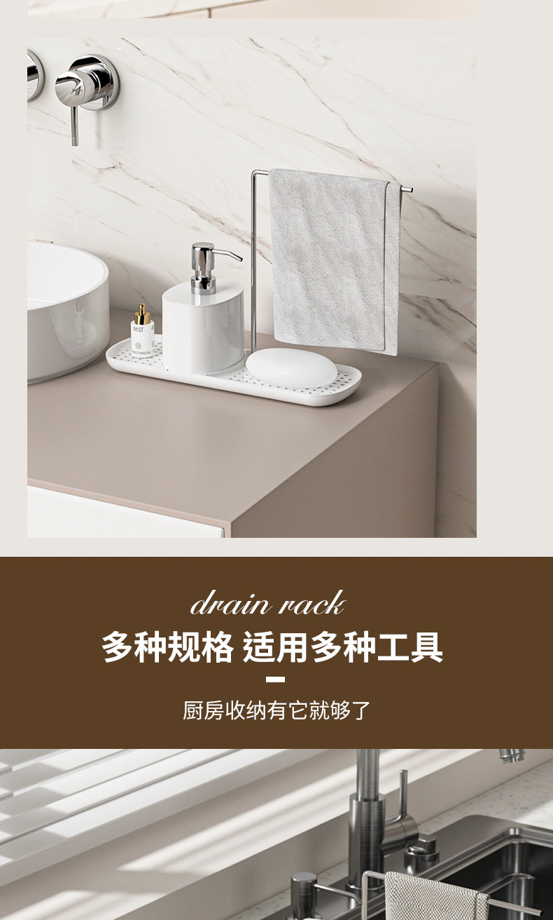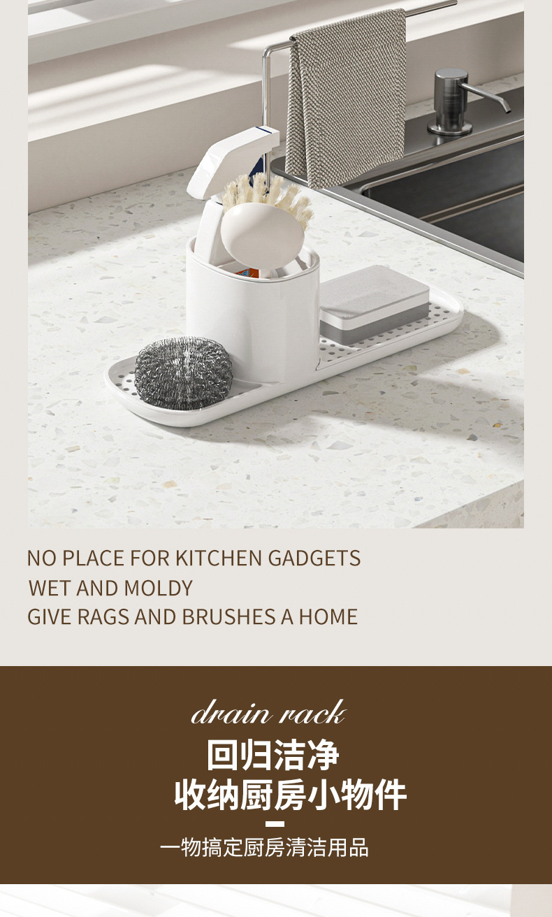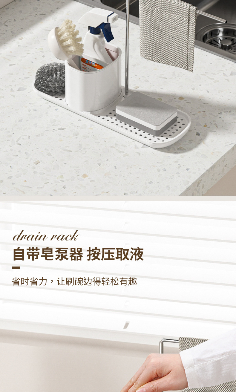 新款厨房多功能置物架手动按压皂液盒不锈钢抹布架肥皂盒一体批发
