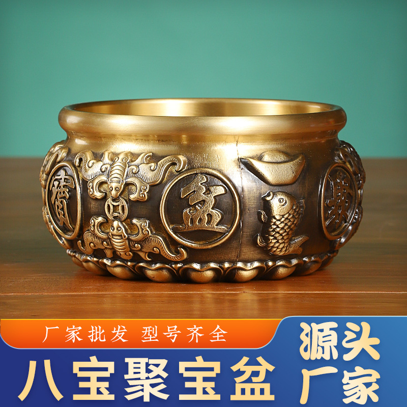 卸売り銅聚宝盆の置物八宝聚宝盆蓮の台座聚宝盆の置物