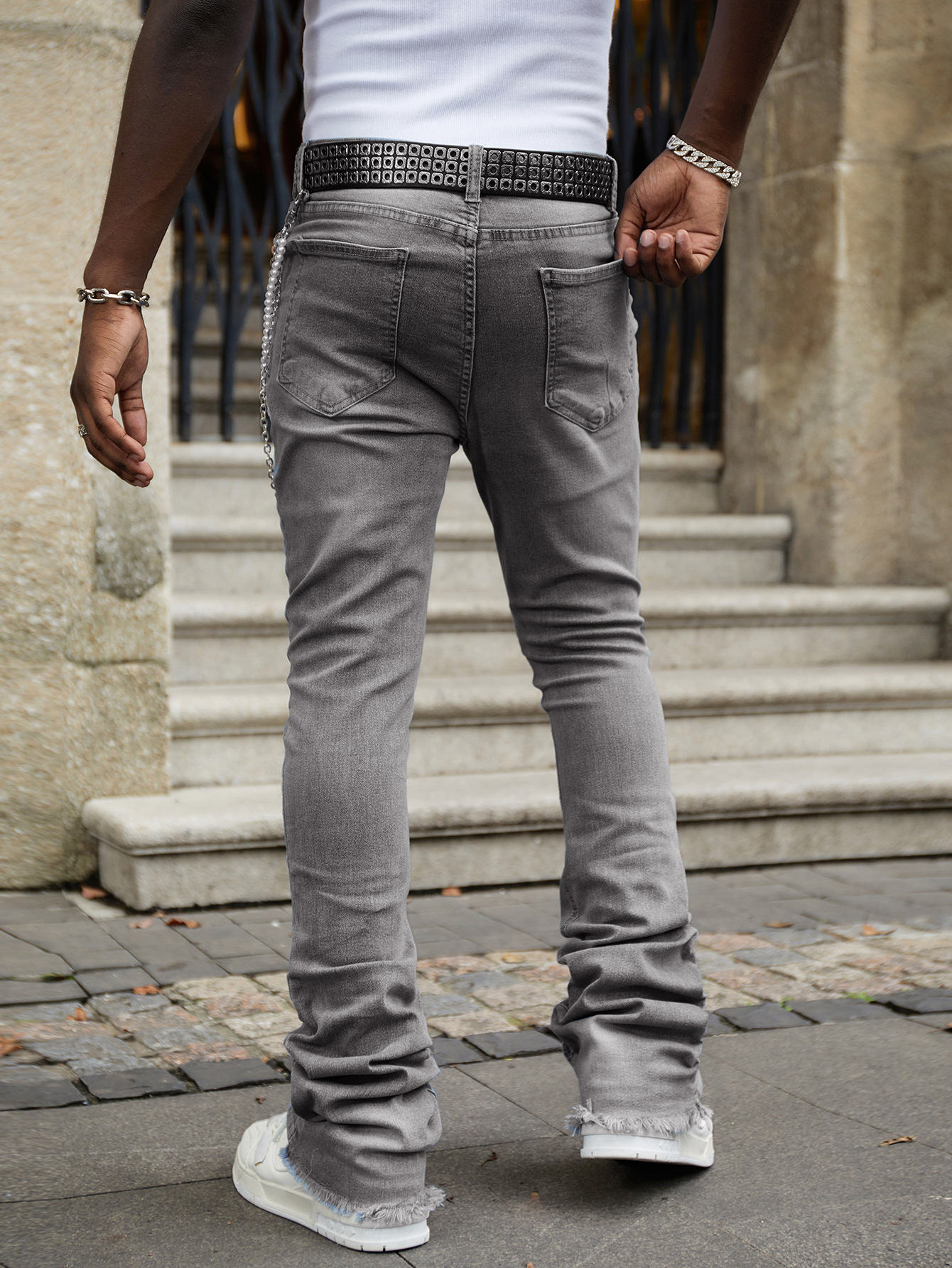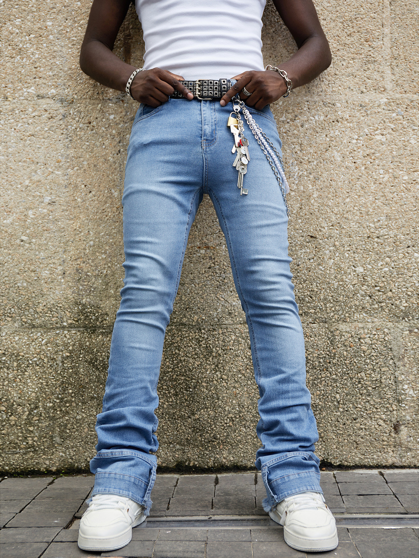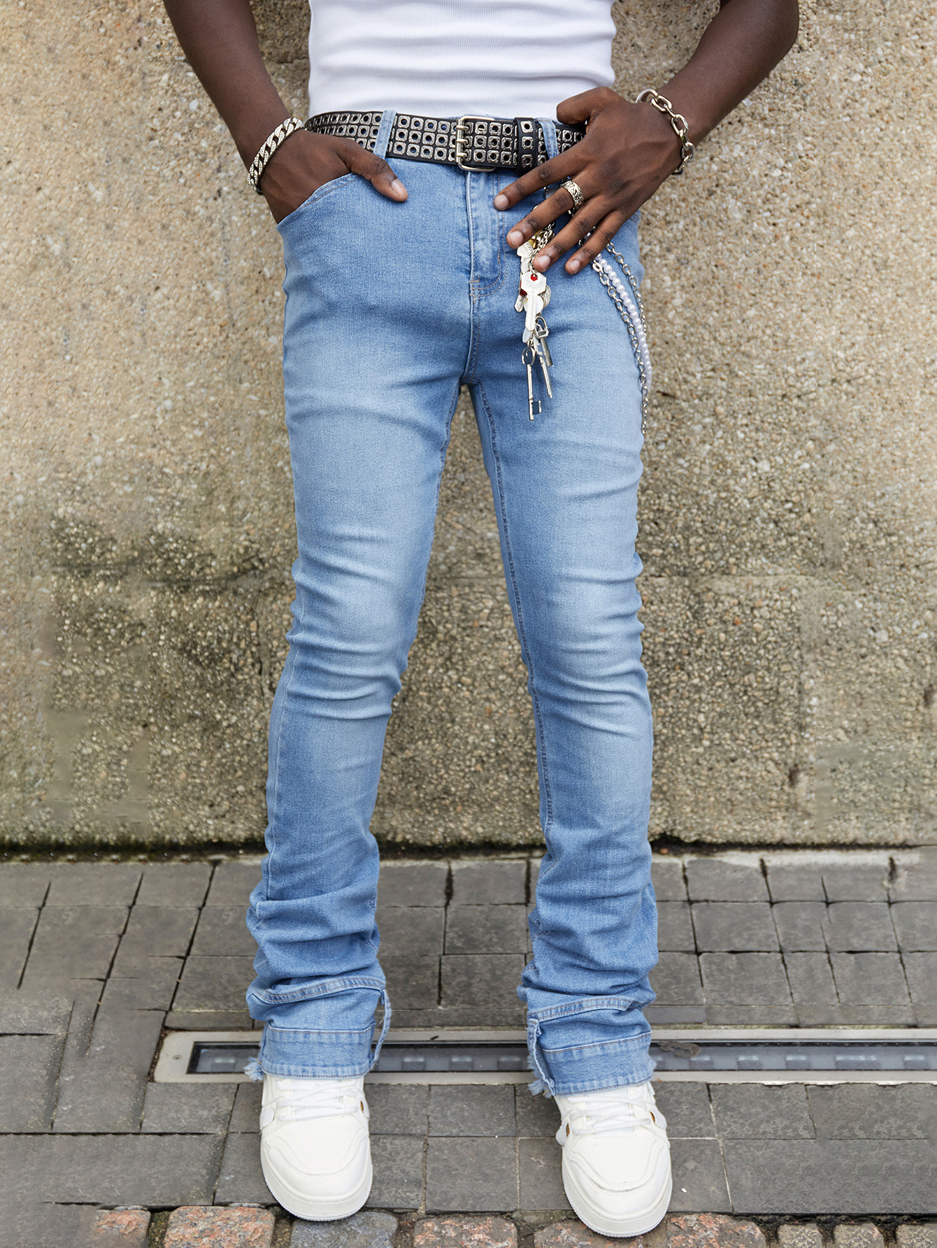 跨境新款男士牛仔直筒裤欧美街头时尚ins爆款弹力贴布牛仔堆叠裤