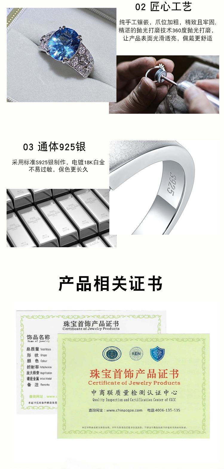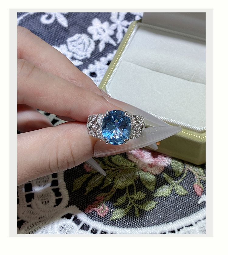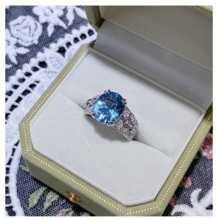 S925 シルバー育成ブルースピネルリング卵型 2 カラットレディースリングニッチハイエンドカラーパワー生放送ジュエリー卸売