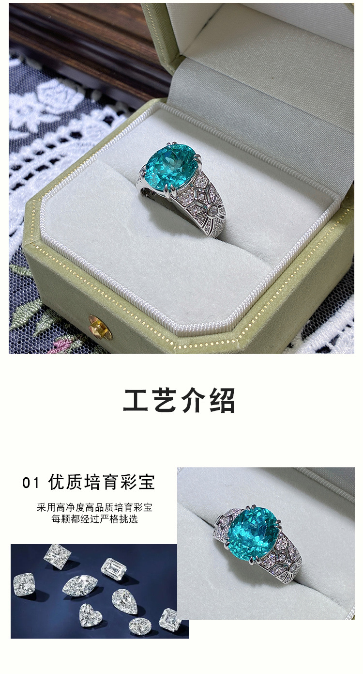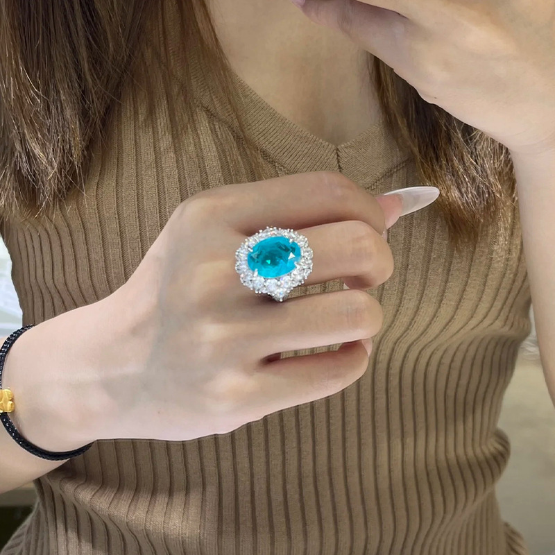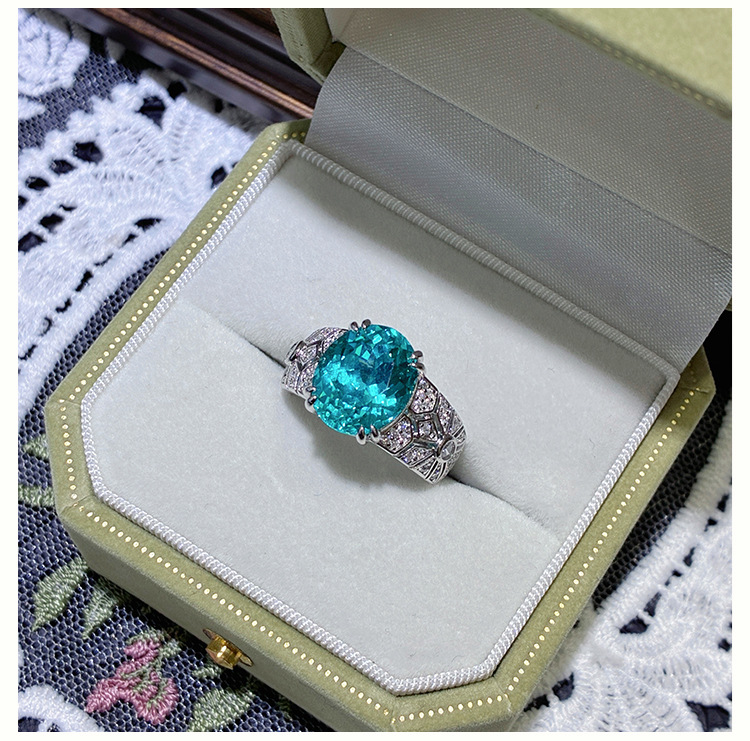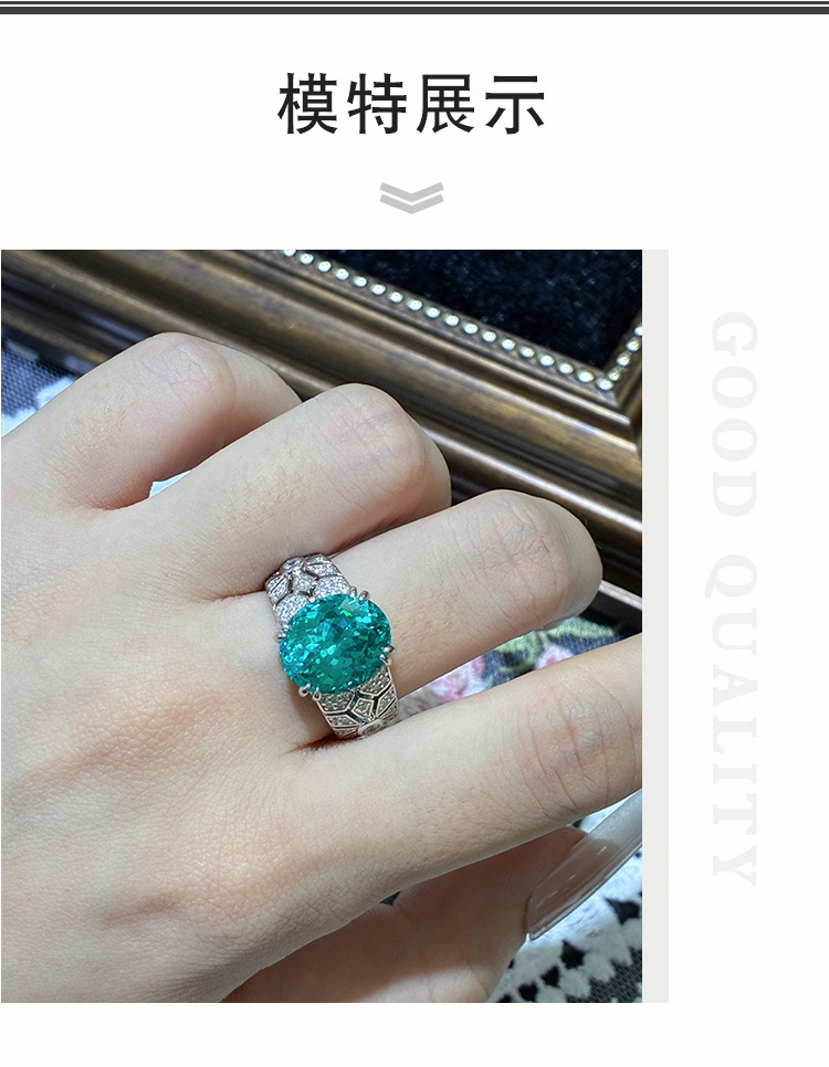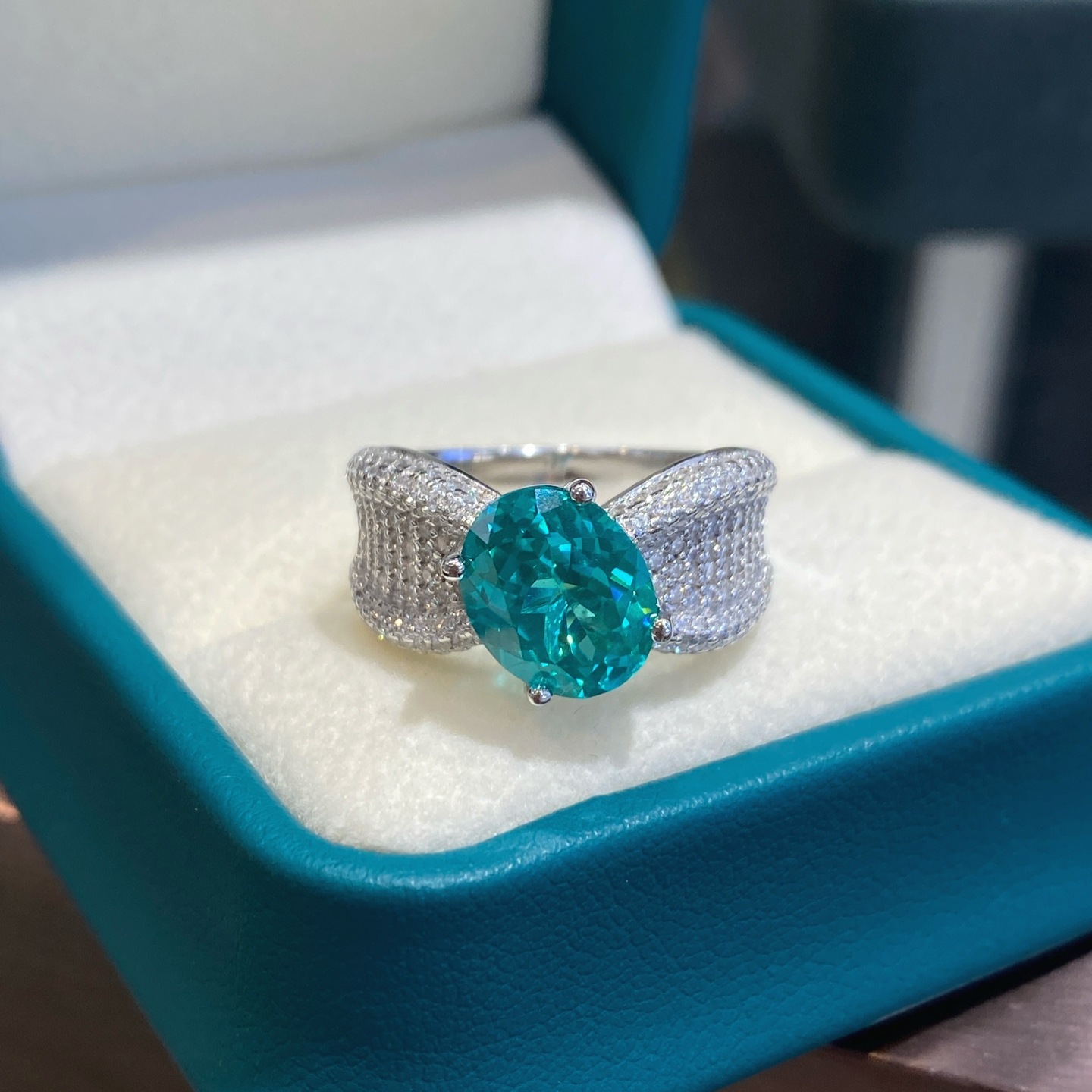 S925纯银实验室培育帕拉伊巴椭圆形6克拉戒指女高级珠宝现货批发
