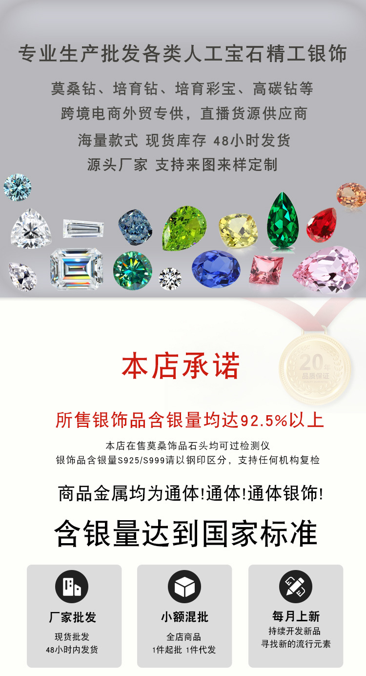 S925纯银实验室培育帕拉伊巴蛋形1.5克拉戒指女批发银镶培育彩宝