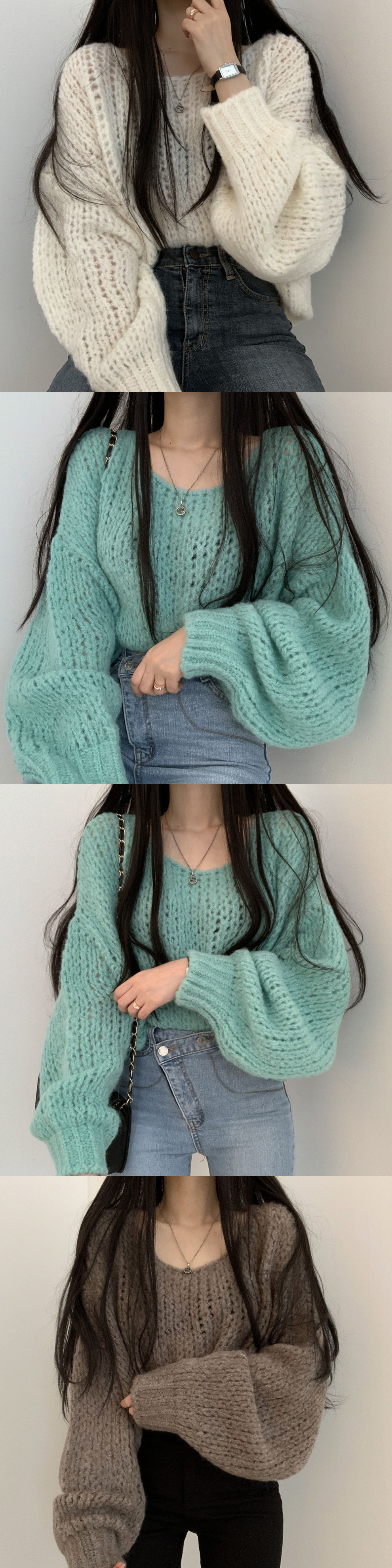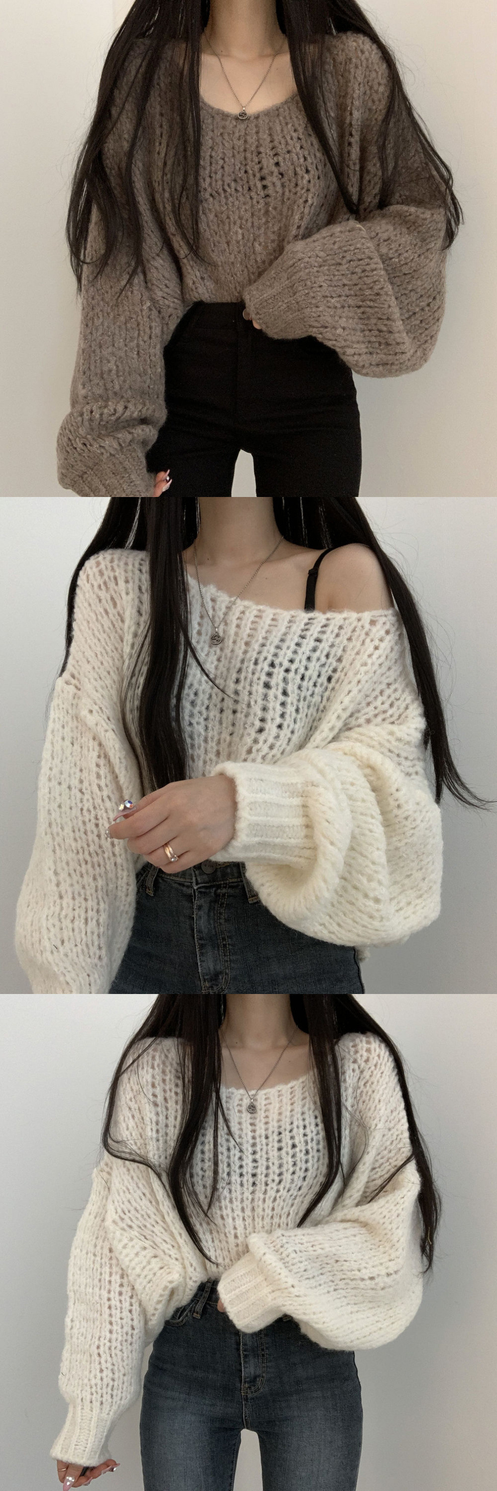 2025 韓国春秋冬多用途キャンディーカラー肌見せプルオーバールーズ太い糸ランタンスリーブニットアウターセーター女性用