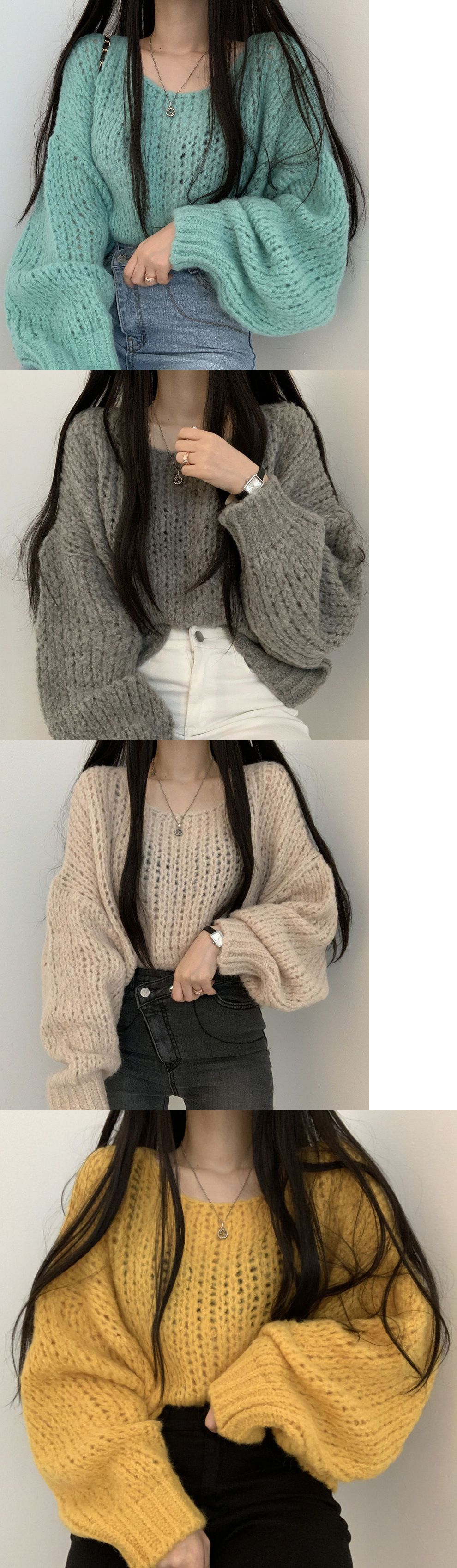 韩国chic秋季百搭糖果色显肤套头宽松粗线灯笼袖针织毛衣女