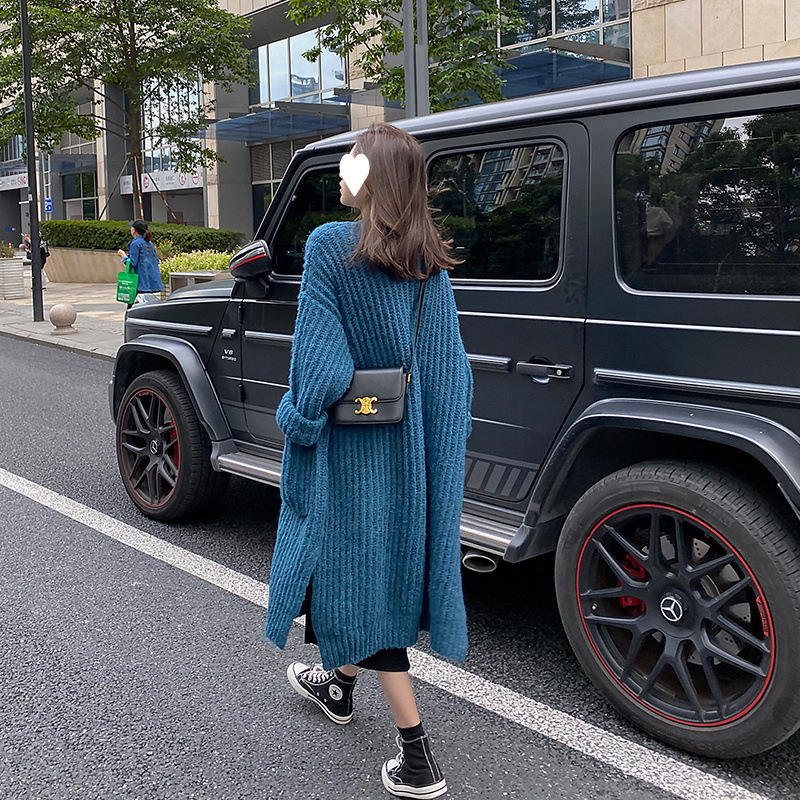秋と冬の新しい韓国スタイルのレイジーピットストリップロングランタンスリーブ暖かいセーターカーディガンジャケットニット女性用