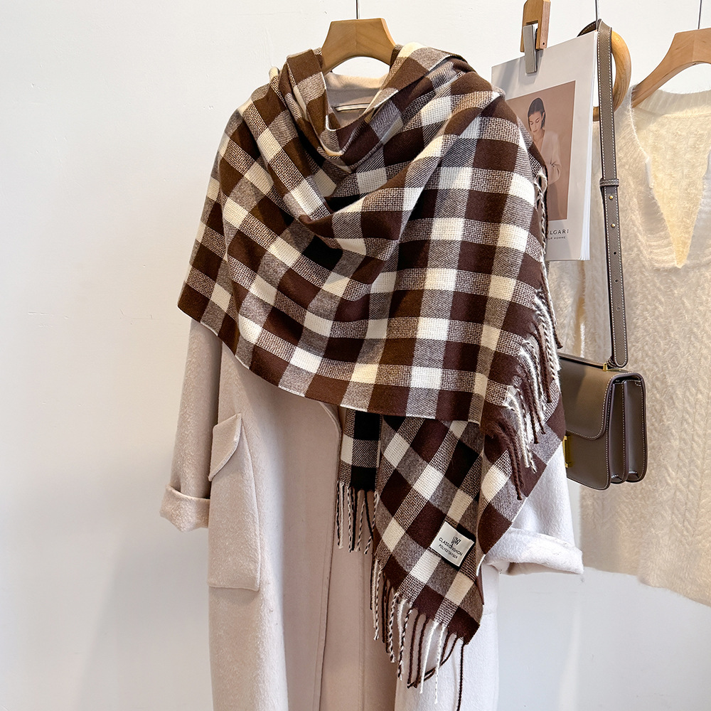 秋冬季羊毛格子围巾女两用加厚流苏披肩外搭韩版学生时尚保暖围脖