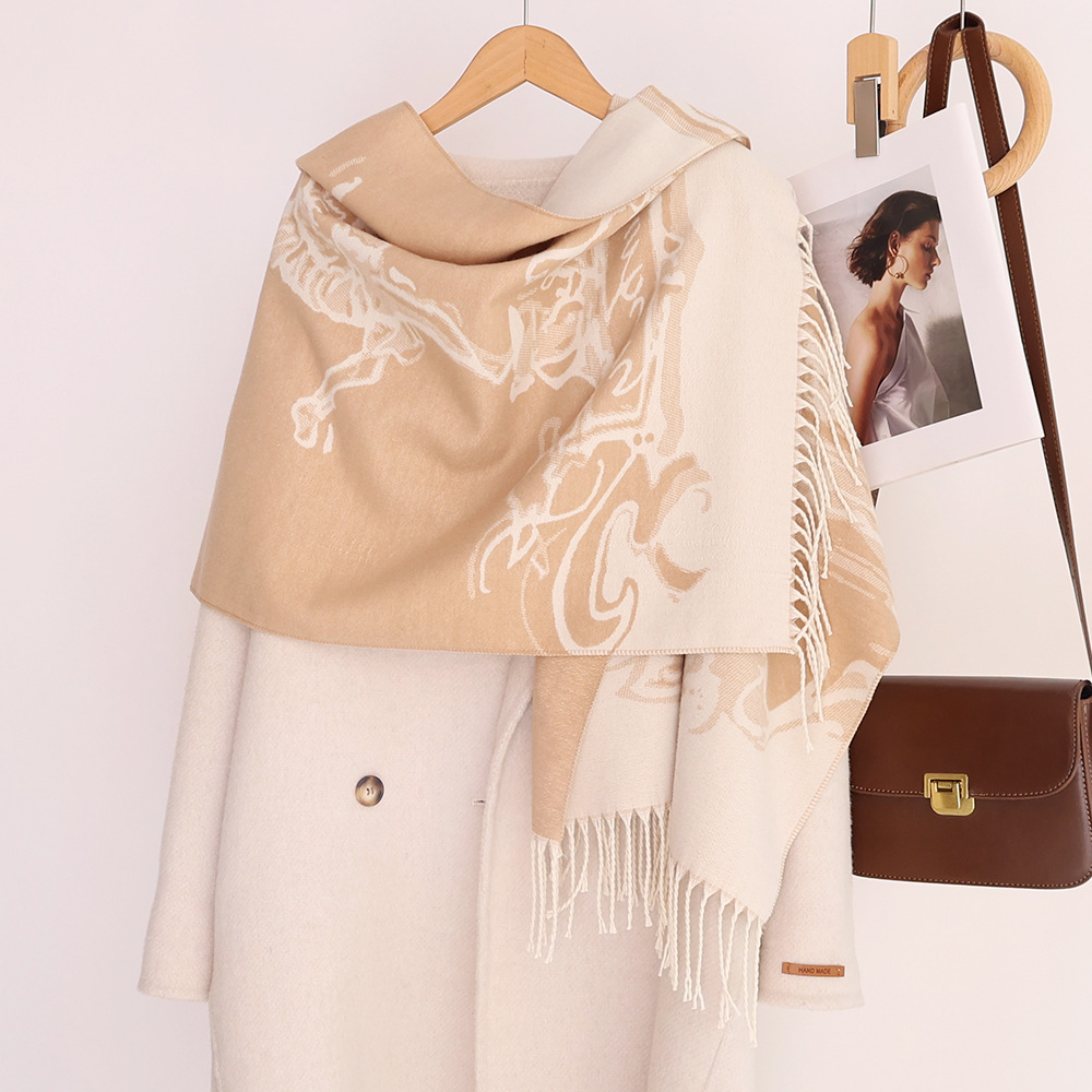 冬の女性用スカーフ、暖かくておしゃれ、多用途、イミテーションカシミヤ、厚手のネックウォーマー、欧米風高級感のあるショール、ネットで話題のエレガントなスタイル
