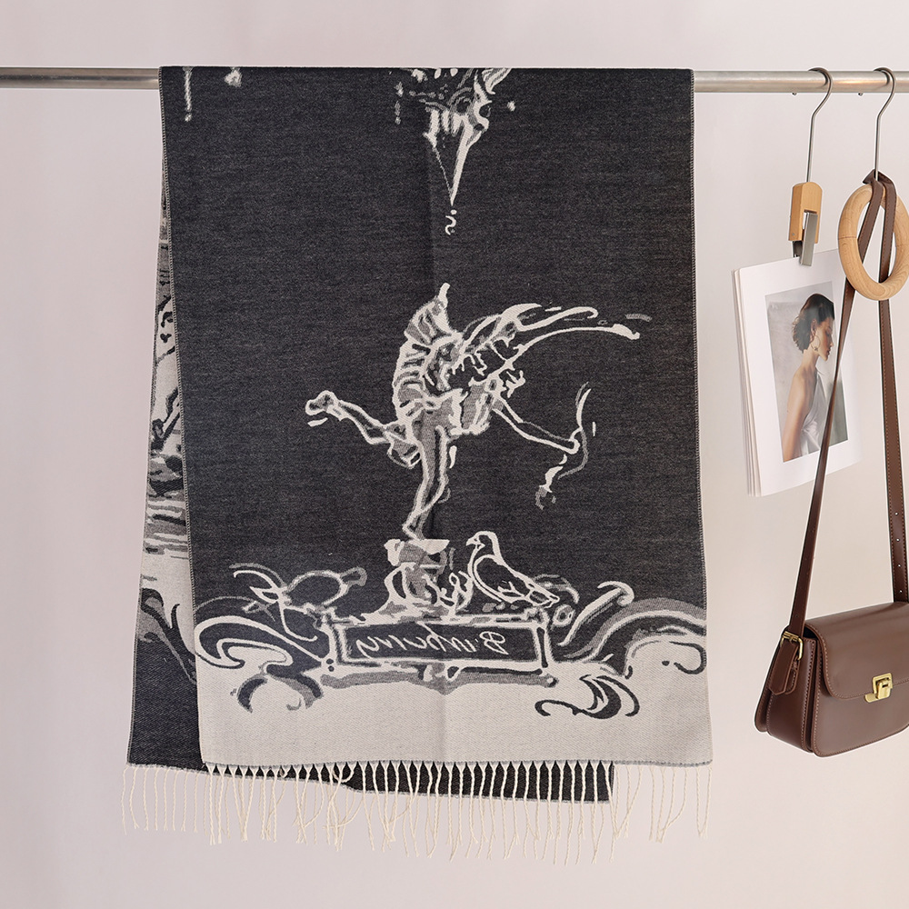 秋冬季几何仿羊绒围巾女欧美轻奢高级感流苏披肩外搭加厚保暖围脖