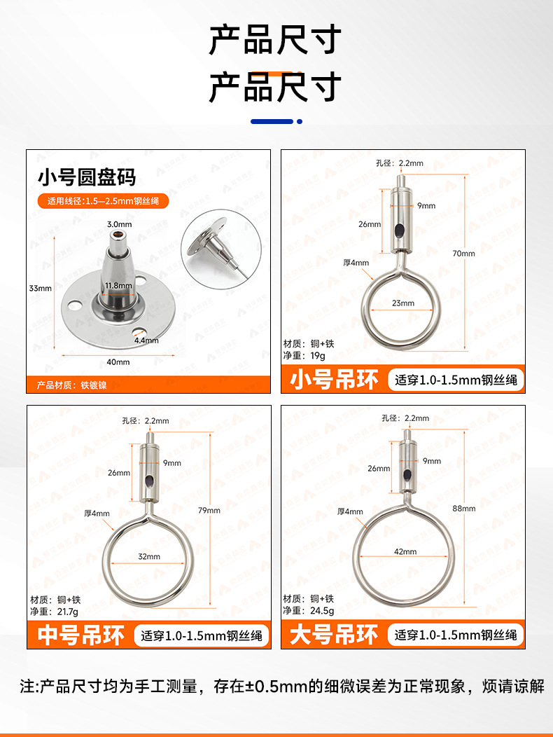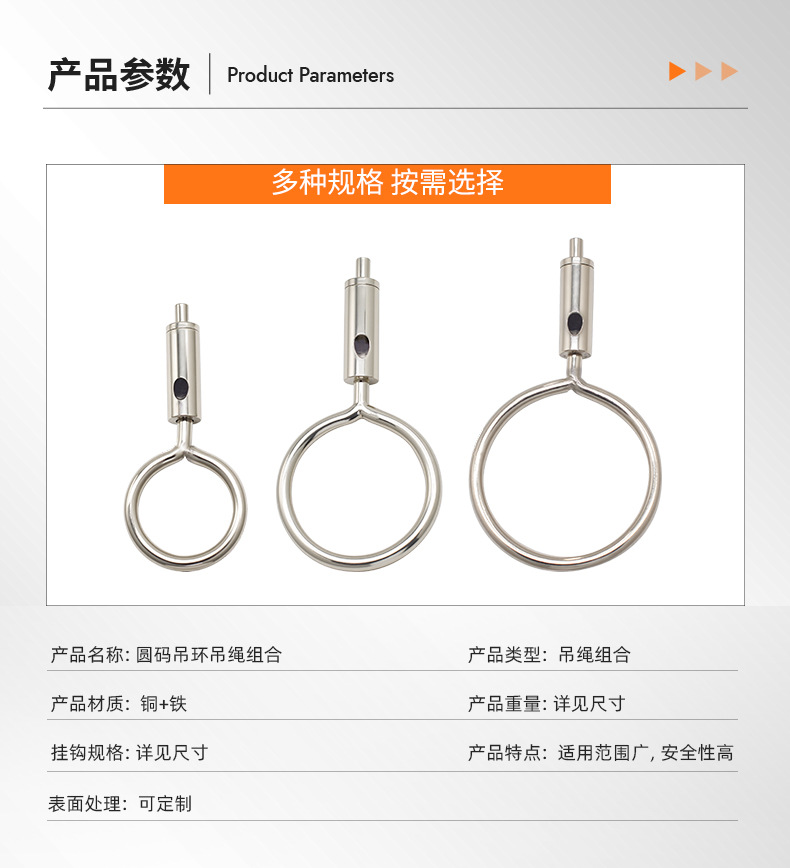 产品规格 【小号吊环】0.5米吊绳套组,【小号吊环】1米吊绳套组,【小号吊环】1.5米吊绳套组,【小号吊环】2米吊绳套组,【小号吊环】2.5米吊绳套组,【小号吊环】3米吊绳套组,【中号吊环】0.5米吊绳套组,【中号吊环】1米吊绳套组,【中号吊环】1.5米吊绳套组,【中号吊环】2米吊绳套组,【中号吊环】2.5米吊绳套组,【中号吊环】3米吊绳套组,【大号吊环】0.5米吊绳套组,【大号吊环】1米吊绳套组,【大号吊环】1.5米吊绳套组,【大号吊环】2米吊绳套组,【大号吊环】2.5米吊绳套组,【大号吊环】3米吊绳套组