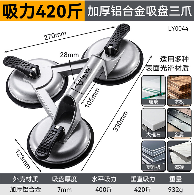 徳力西電気タイル吸盤三爪固定ガラス吸盤強力重型アルミ合金ガラス吸盤
