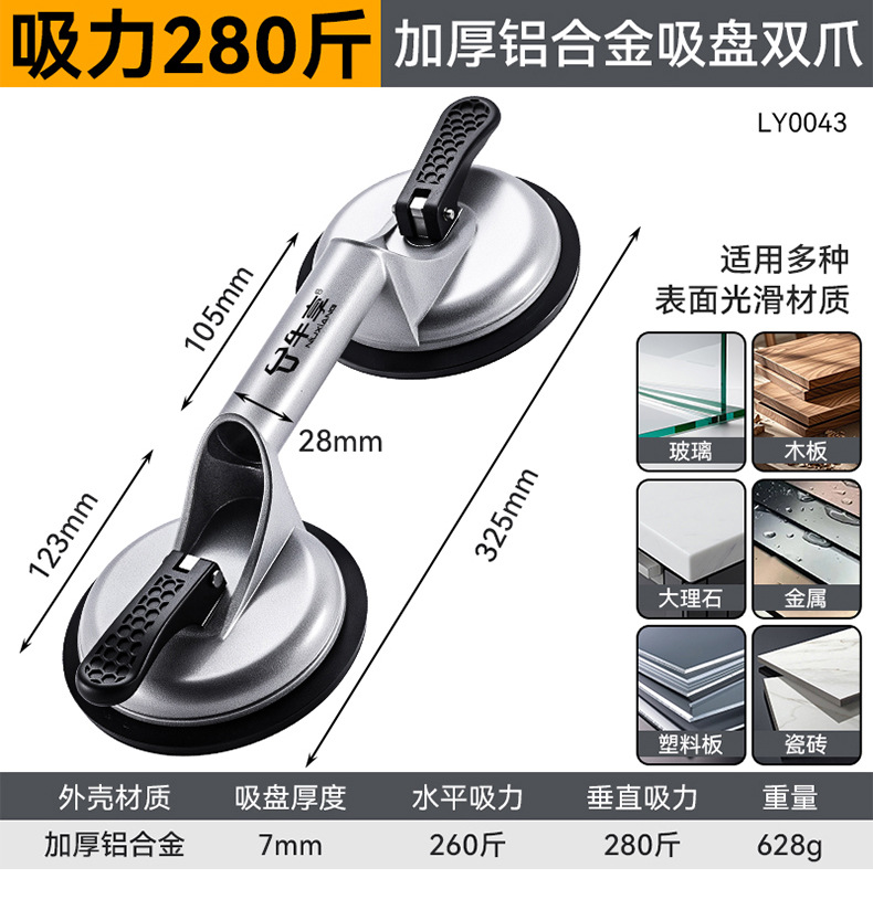 強力ガラス吸盤工業アルミニウム合金ガラスタイル運搬工具重厚厚強力吸盤固定器