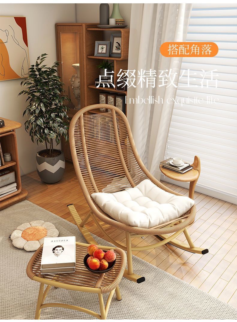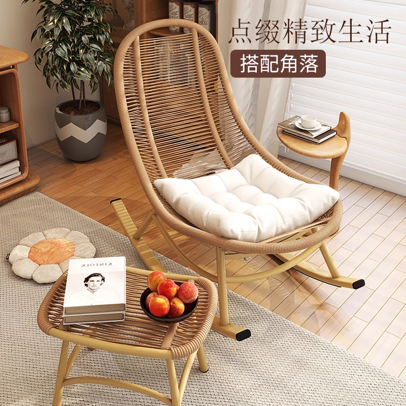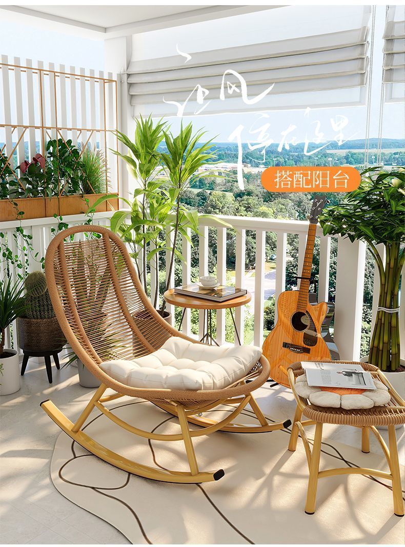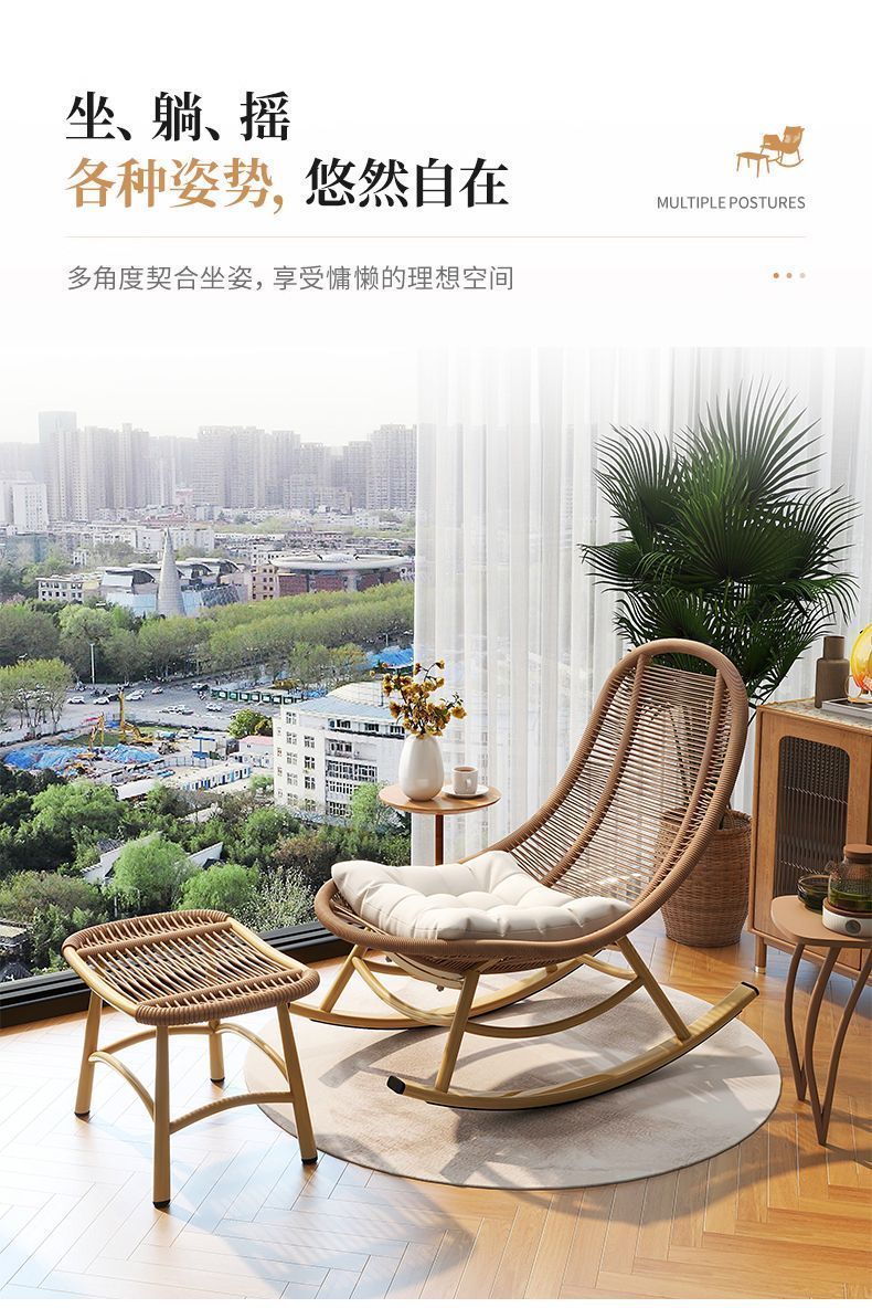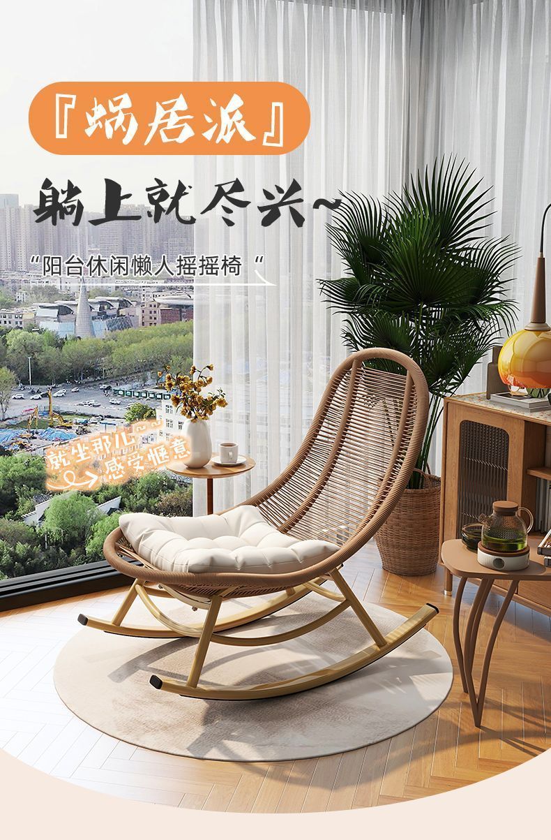 ロッキングチェア、リクライニングチェア、大人用怠惰なソファ、睡眠用レジャーバルコニー籐ソファチェア、インターネット有名人の屋外ロッキングチェア