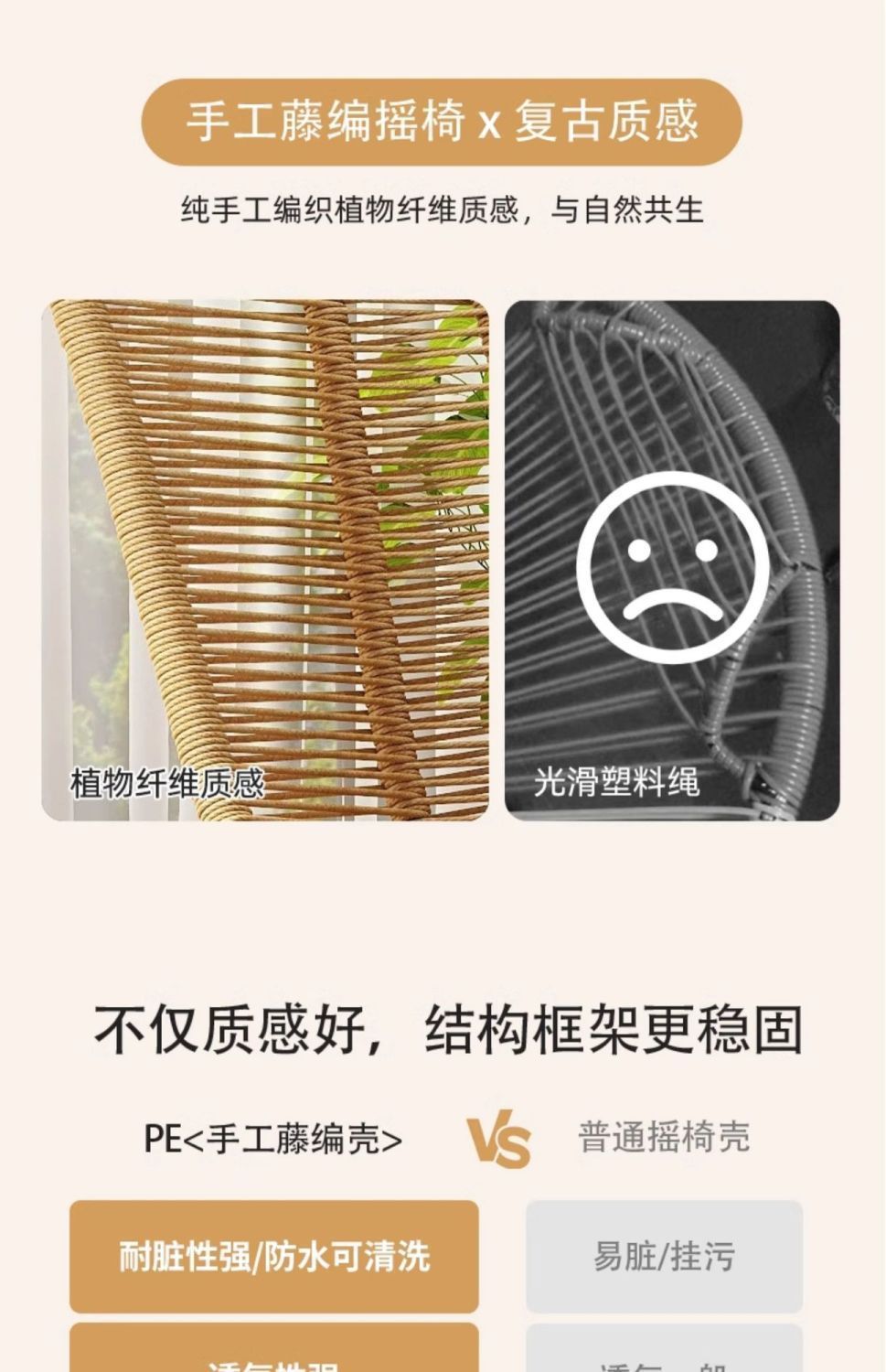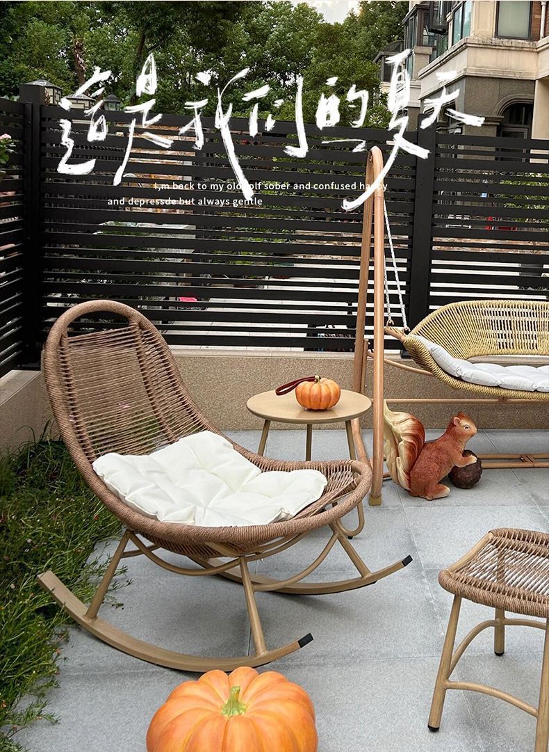 摇摇椅客厅阳台休闲人椅庭院花园藤编椅子懒人田园风午睡躺椅