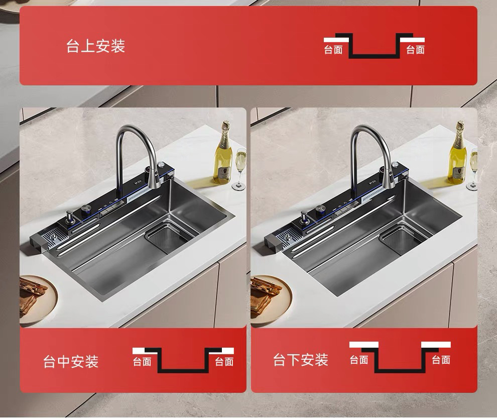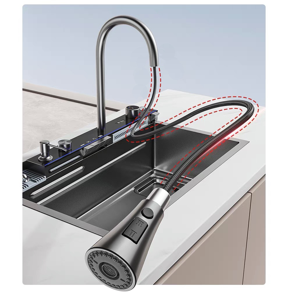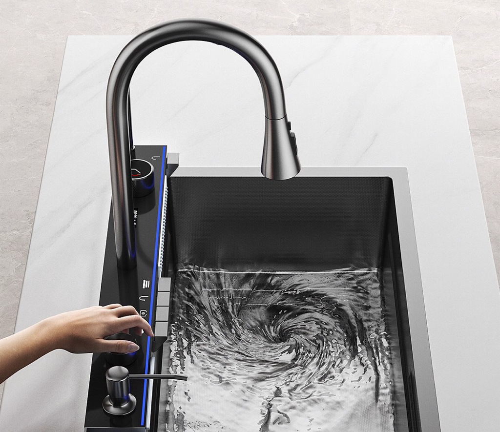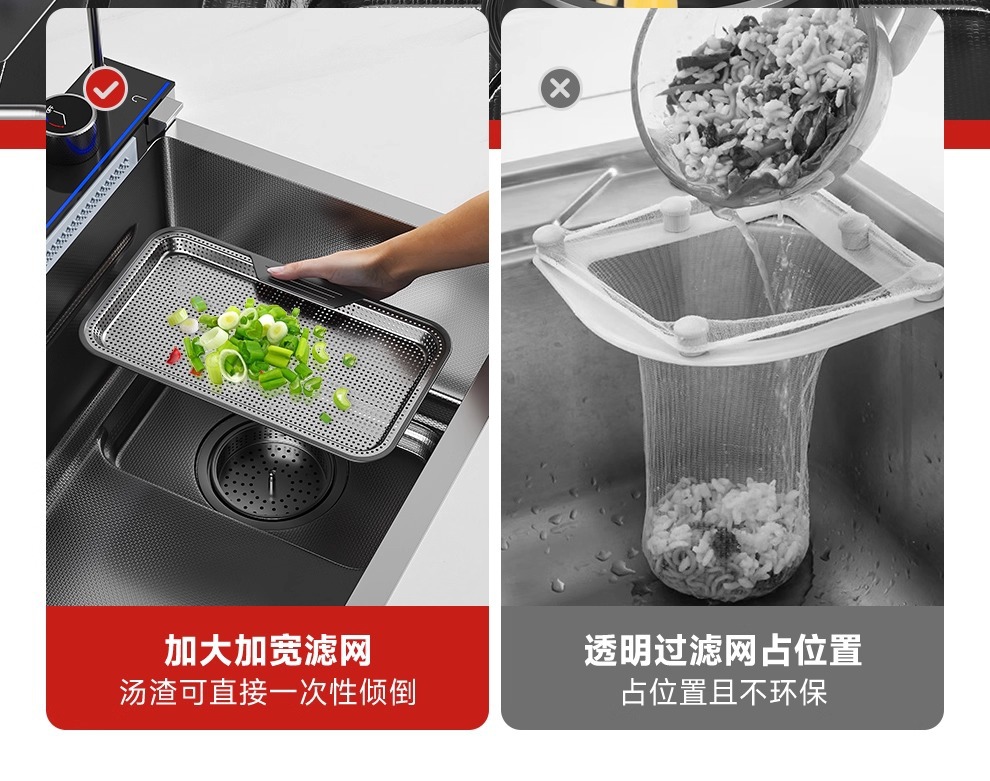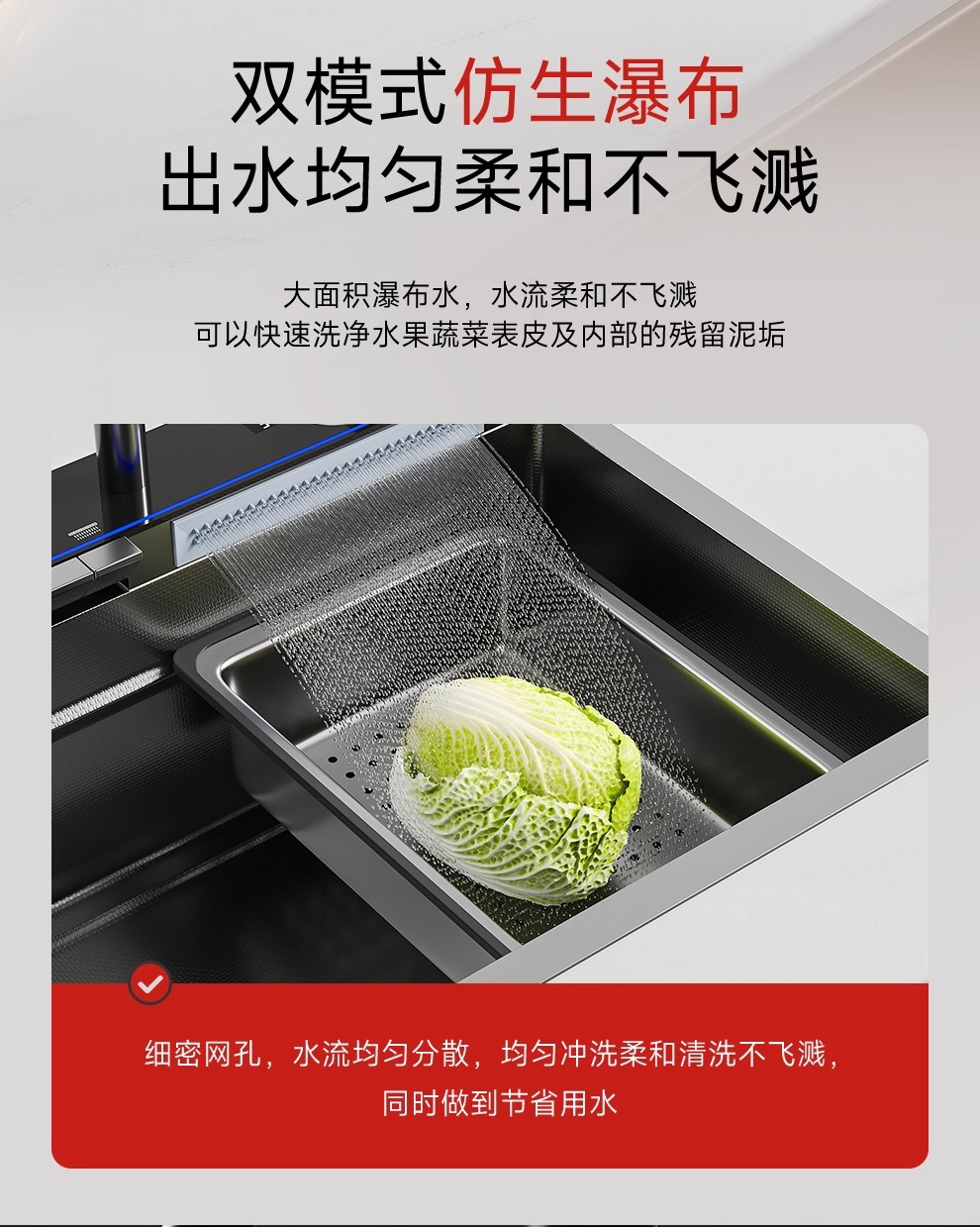 超厚5.0鲸鱼飞雨瀑布304厨房蜂窝水槽单槽数显加厚不锈钢洗菜盆
