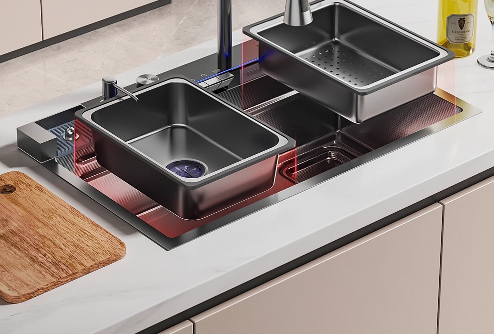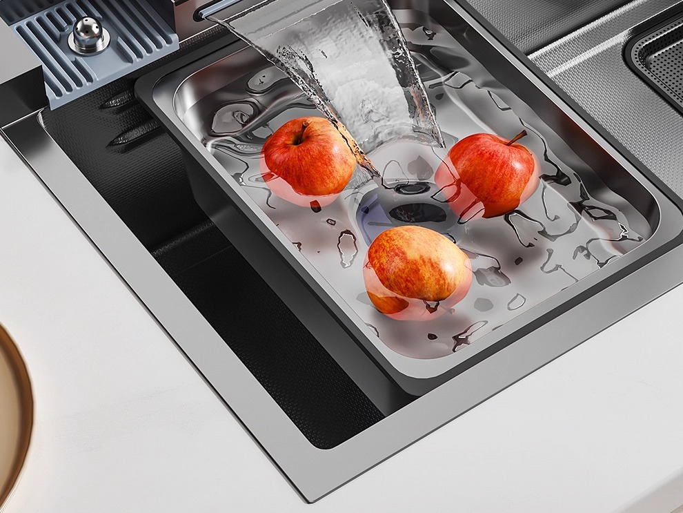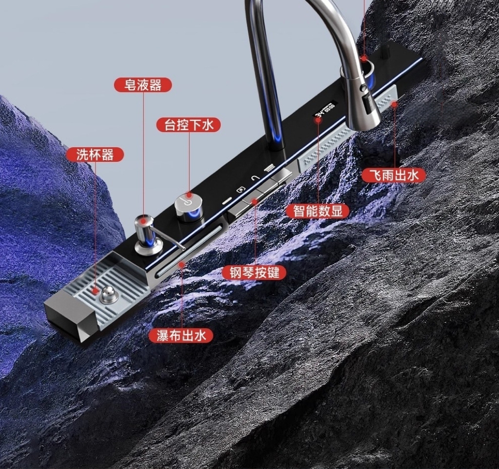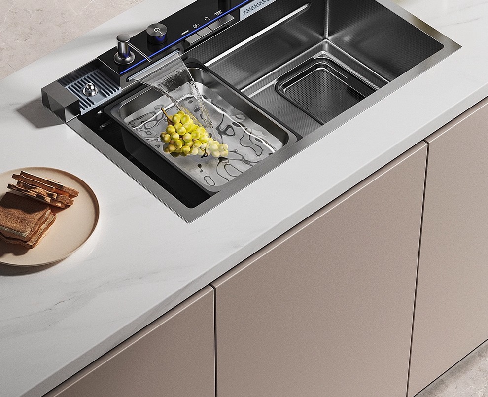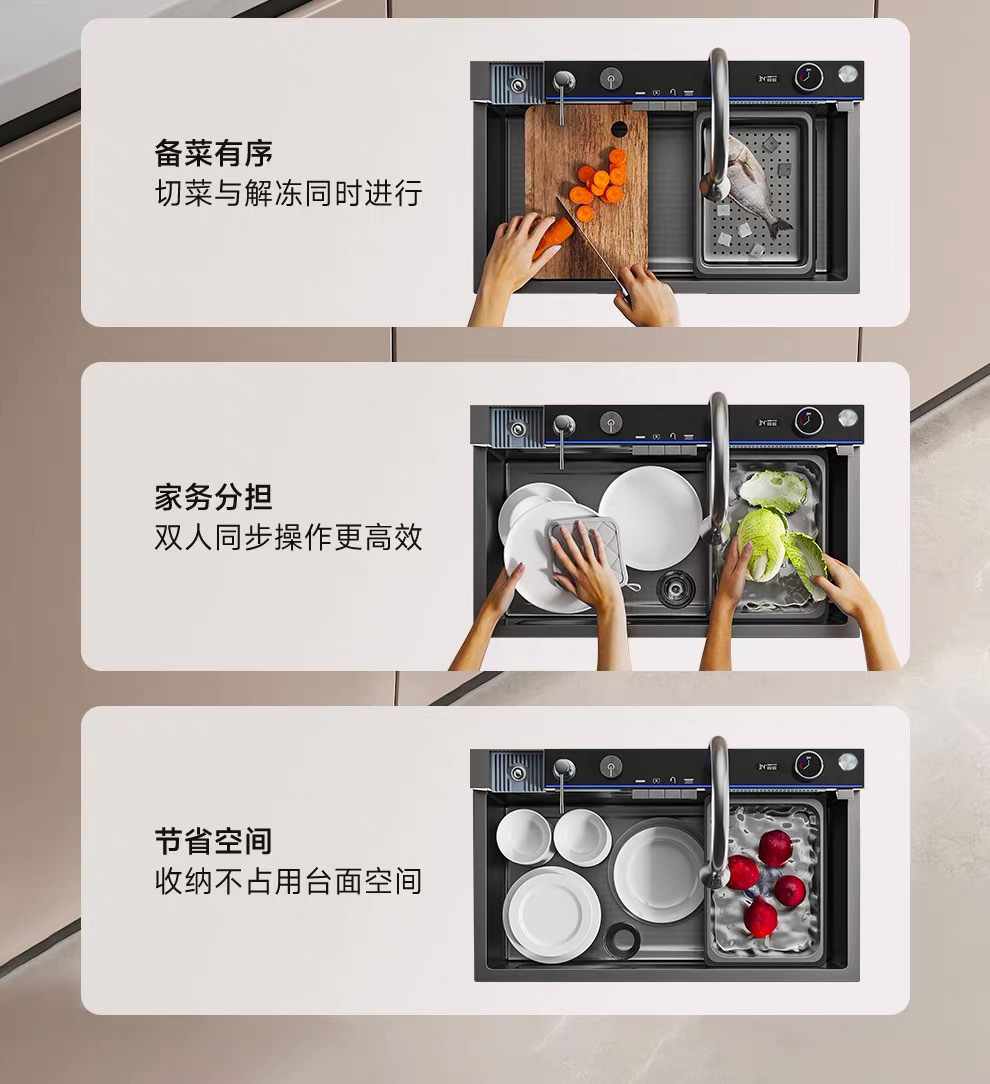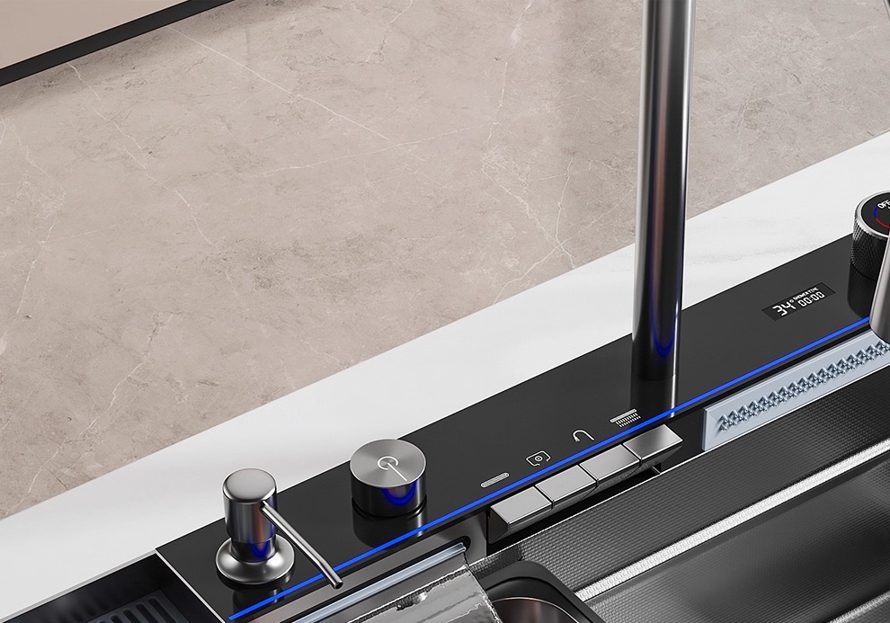 超厚5.0鲸鱼飞雨瀑布304厨房蜂窝水槽单槽数显加厚不锈钢洗菜盆
