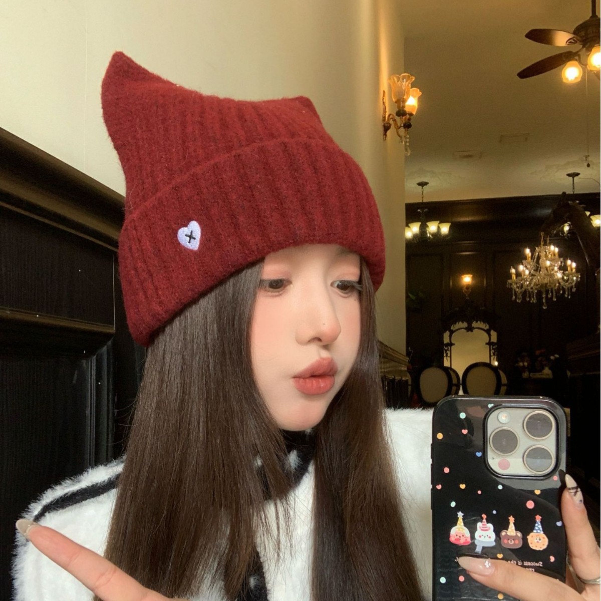 韩国小众明星同款时尚爱心猫耳朵针织帽防风护耳保暖女士毛线帽潮