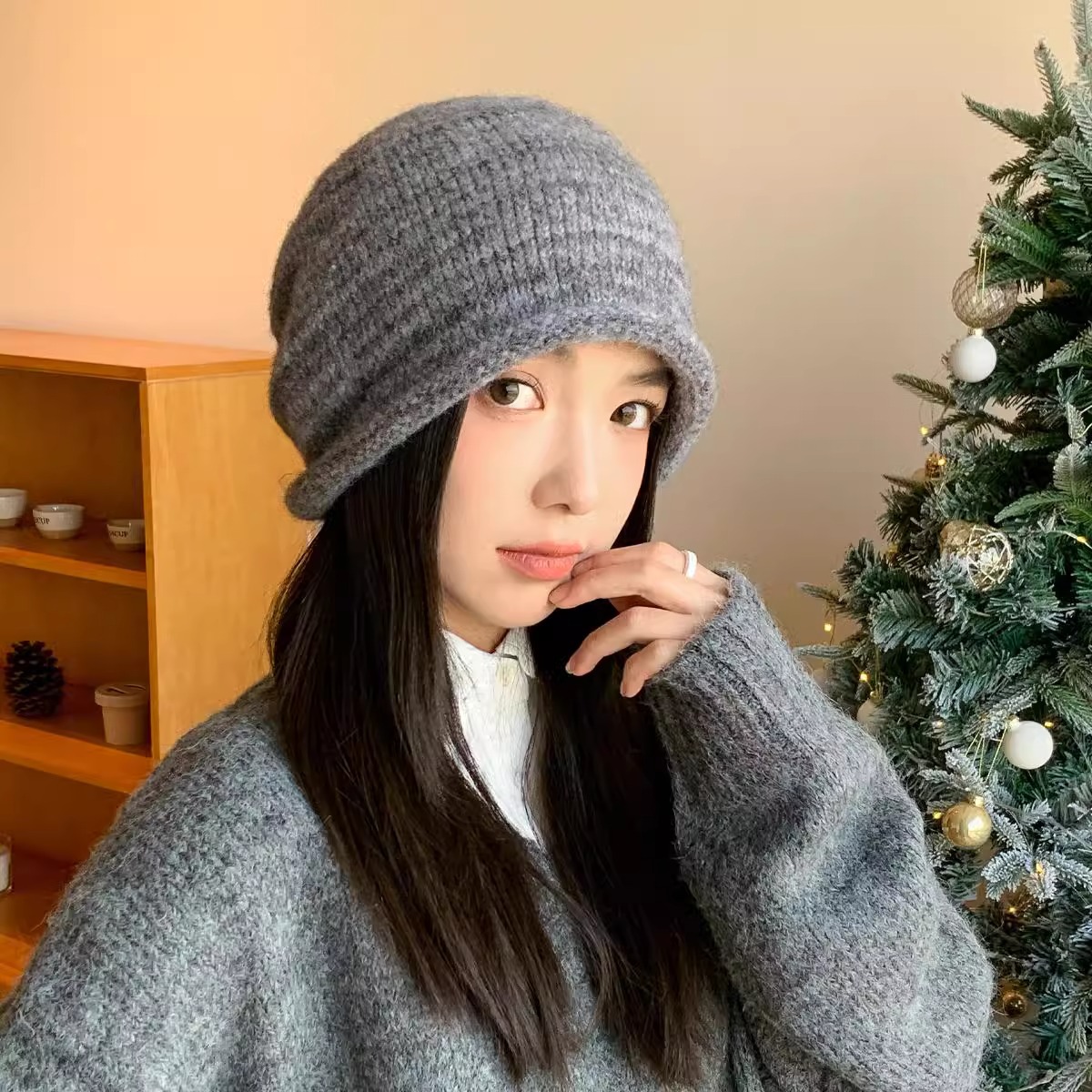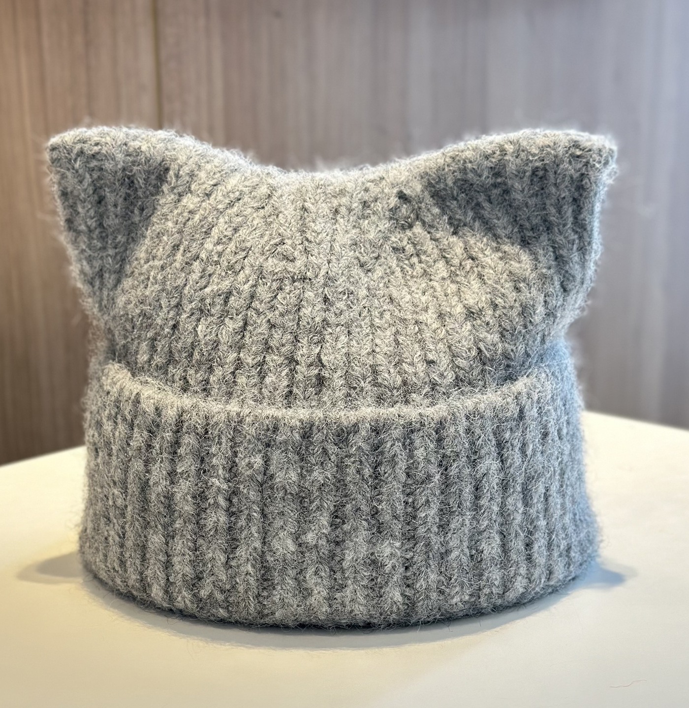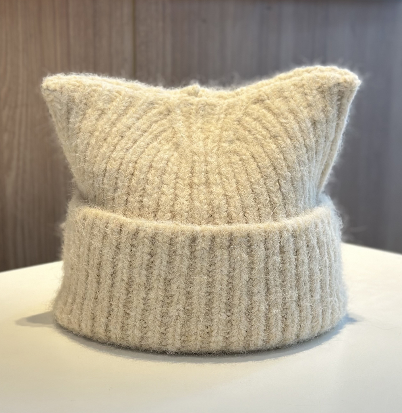 新款羊毛混纺浣熊纯色针织帽子女秋冬季柔软毛线可爱超萌猫耳朵帽