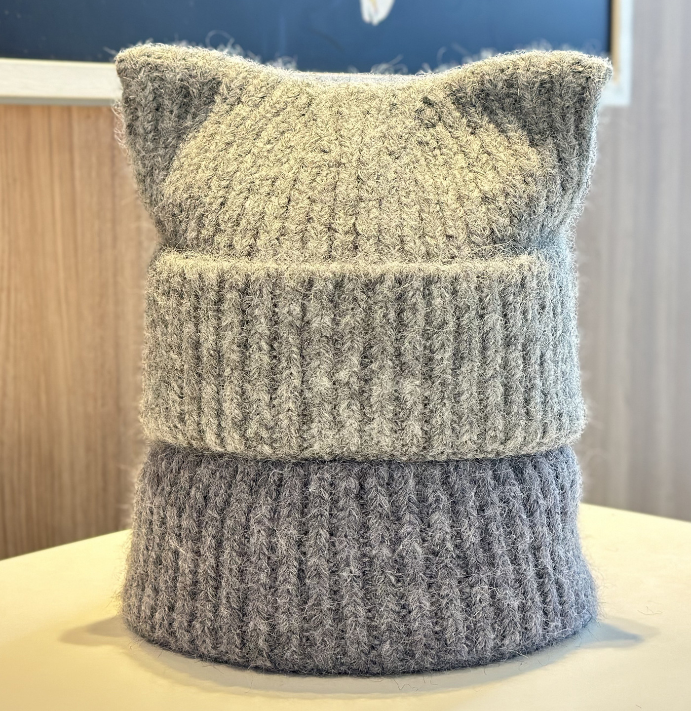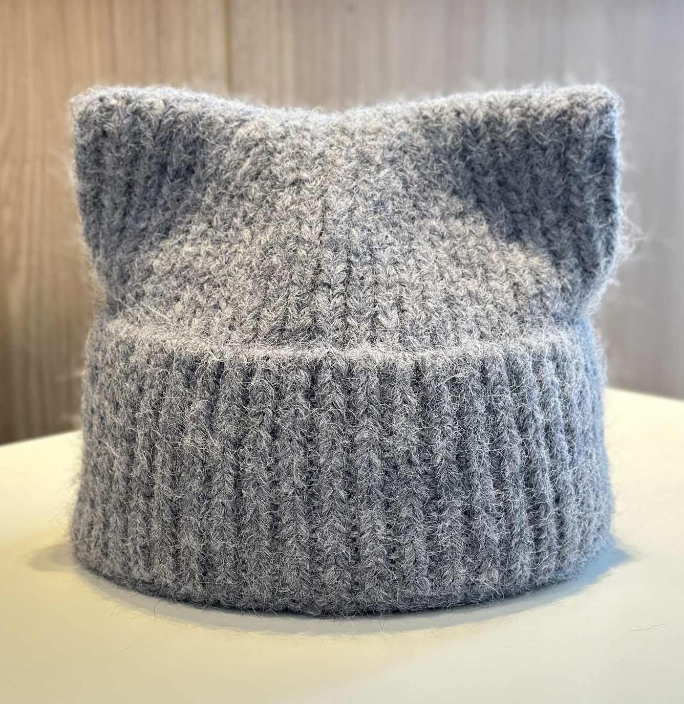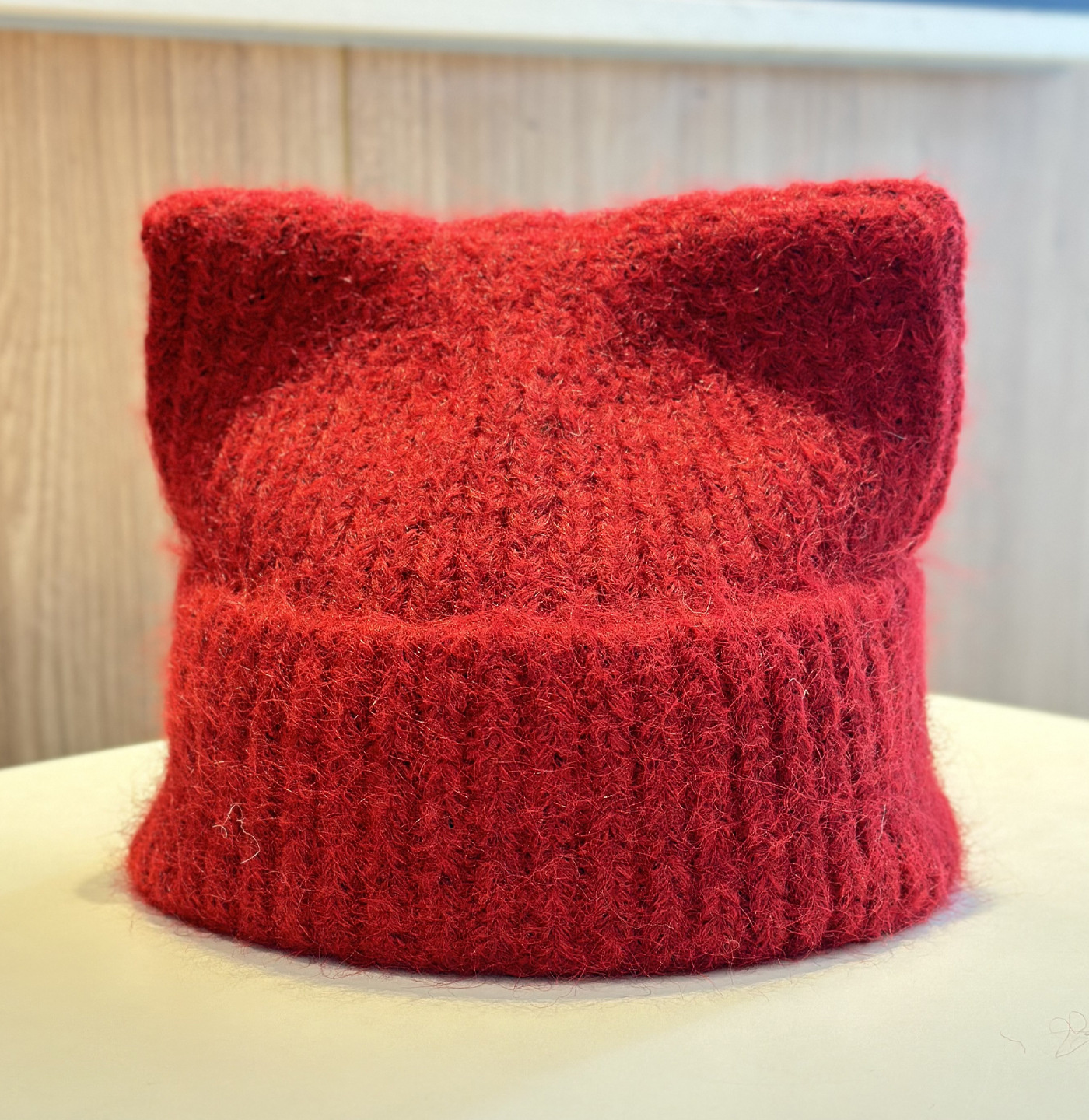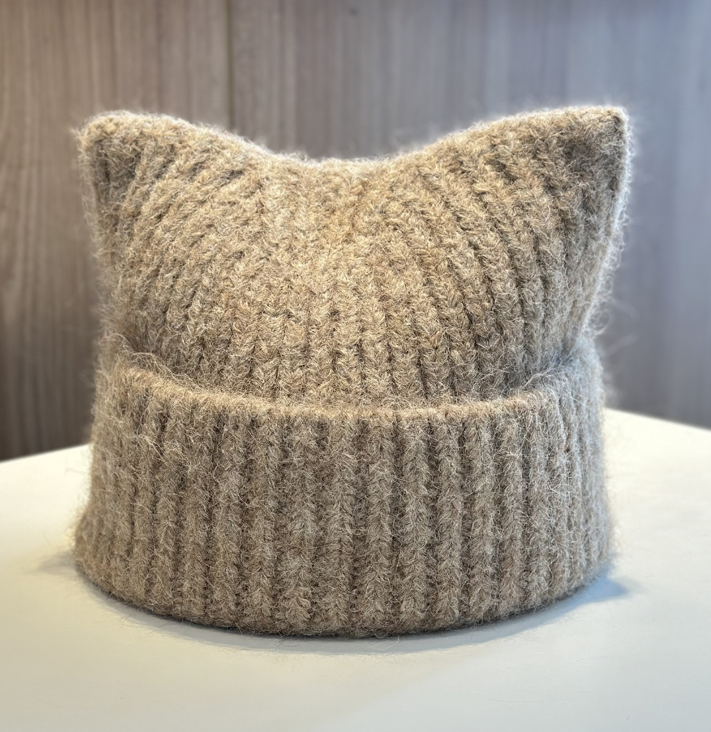 新款羊毛混纺浣熊纯色针织帽子女秋冬季柔软毛线可爱超萌猫耳朵帽