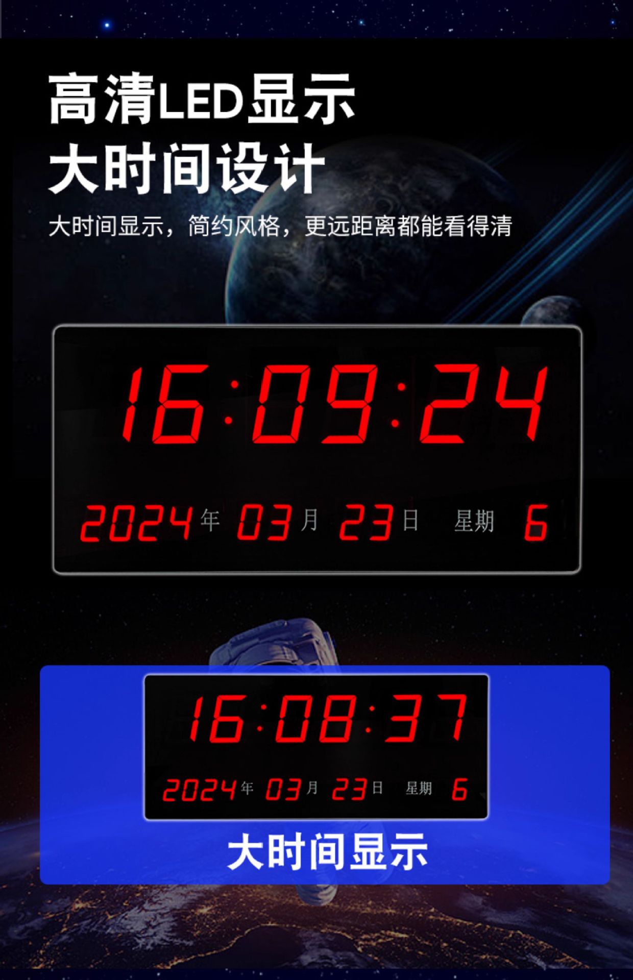 クロスボーダーLEDデジタル電子時計試合専用電子壁貼り時計6020多機能リモコンカウントダウン掛け時計