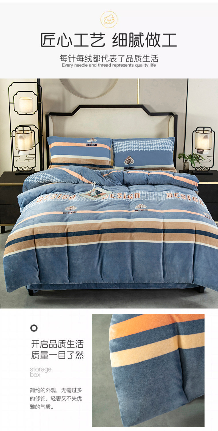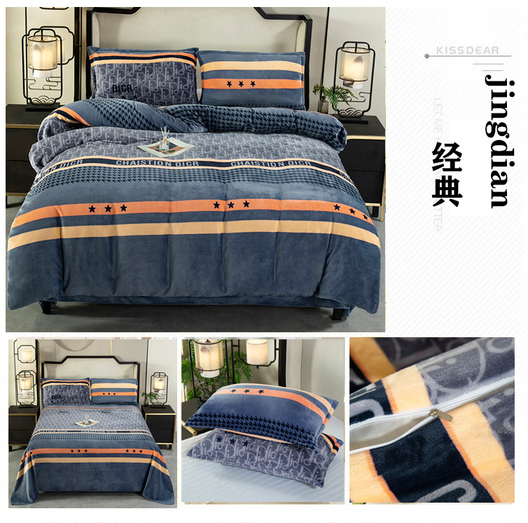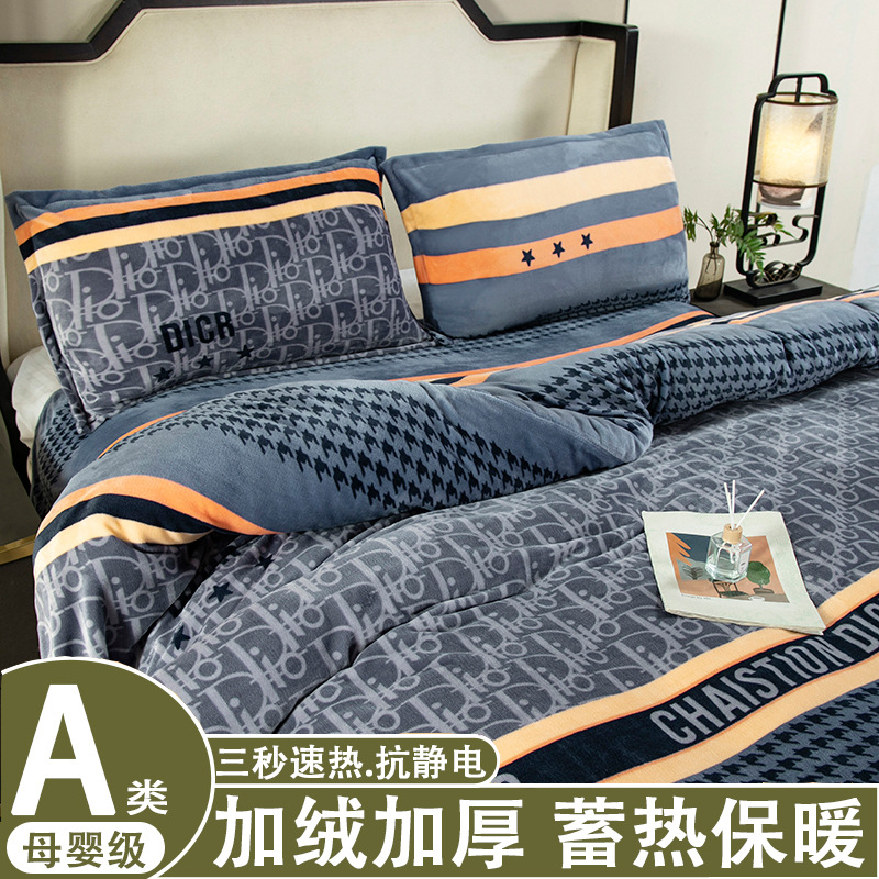 牛奶绒四件套a类加绒被套冬季法兰绒床上用品三件套珊瑚绒床单秋