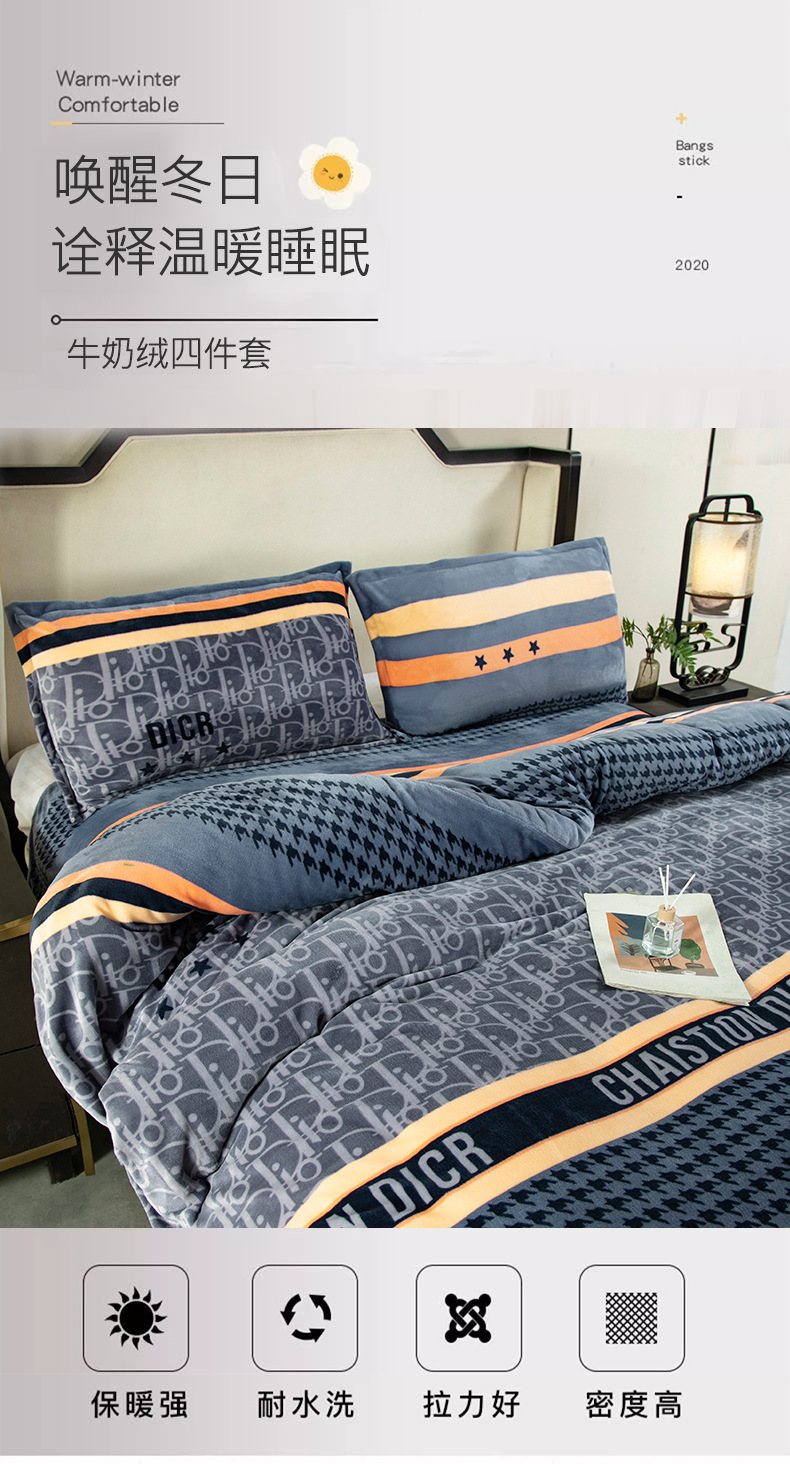 新款冬天牛奶绒四件套珊瑚绒床品双面法兰绒被套厚加绒床单三件套