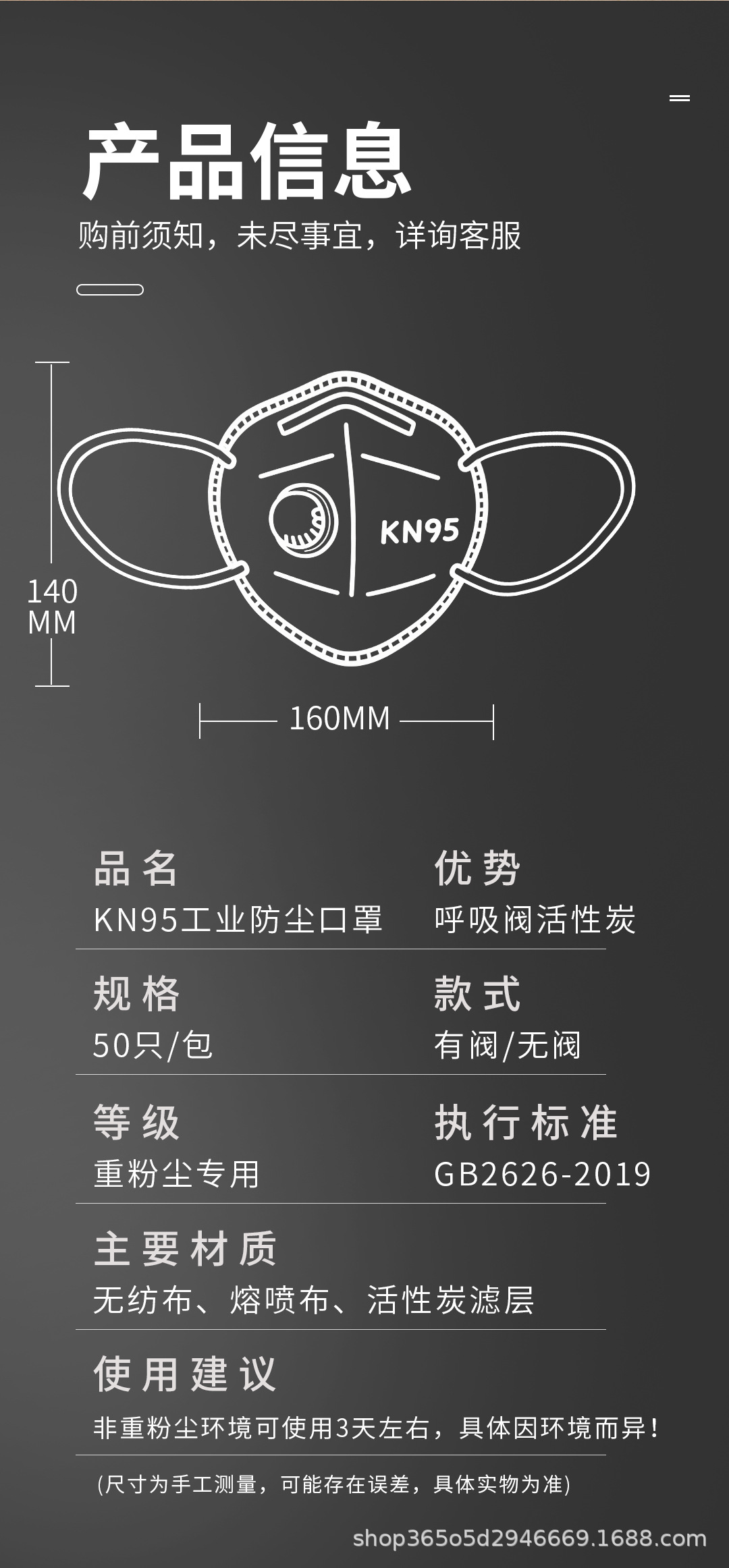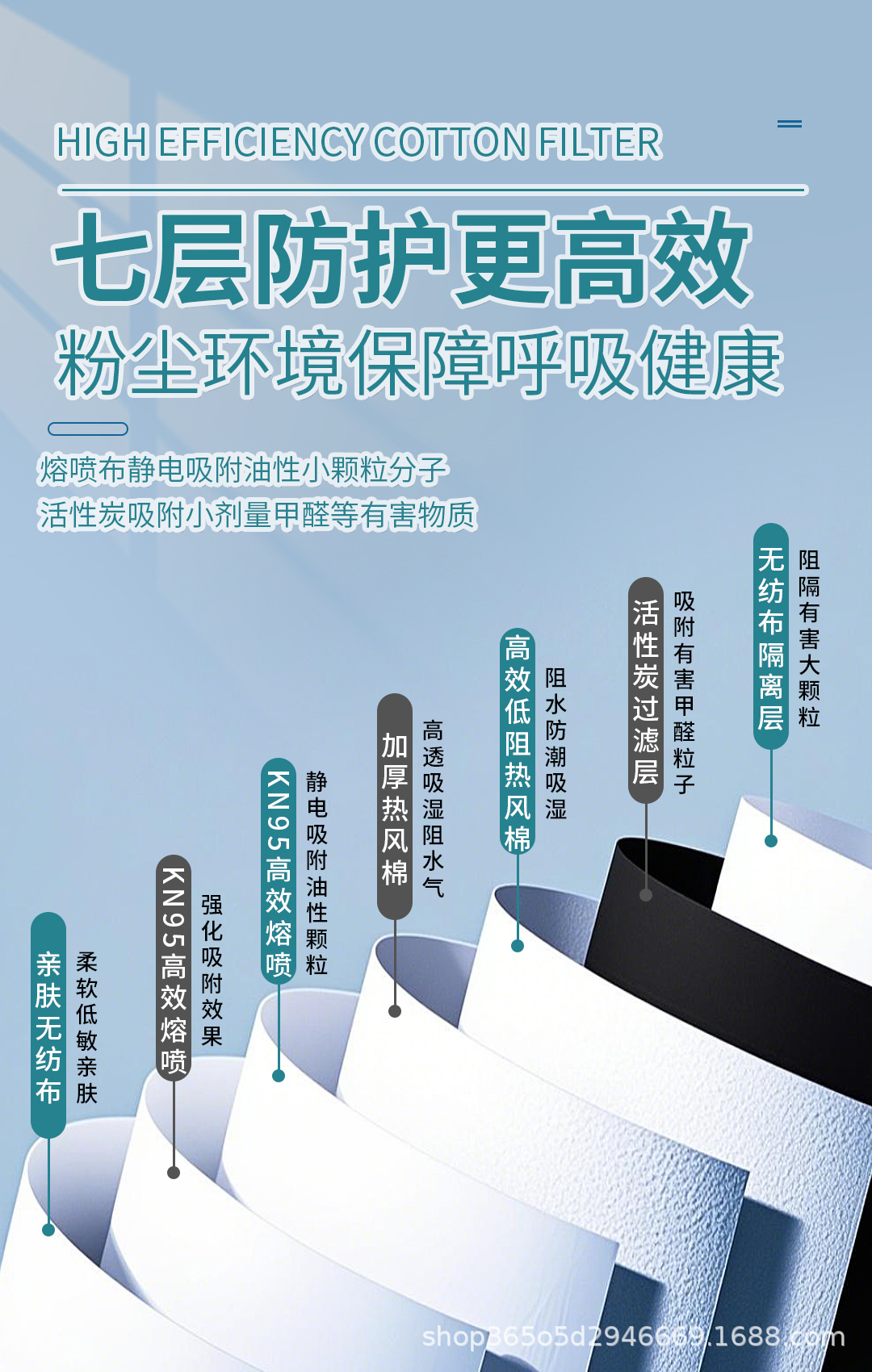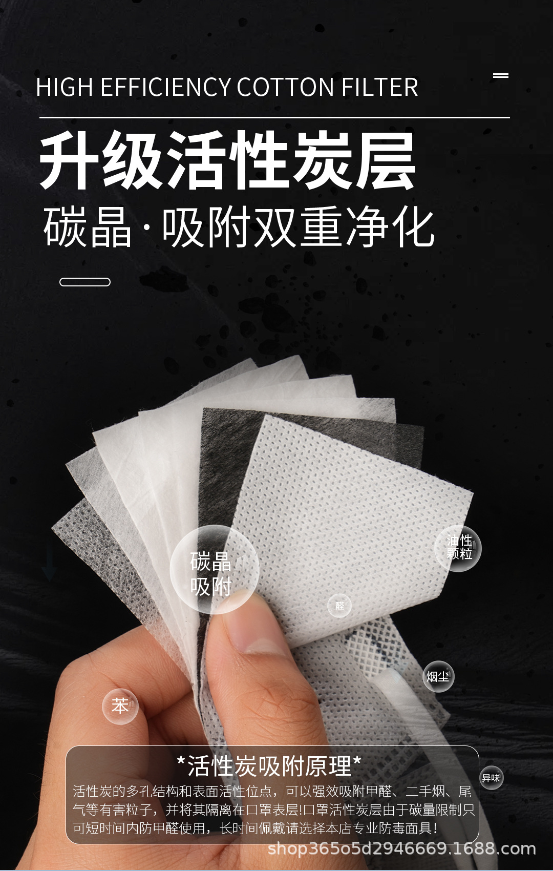 材质 亲肤无纺布+高容尘量熔喷布+高碘值活性炭