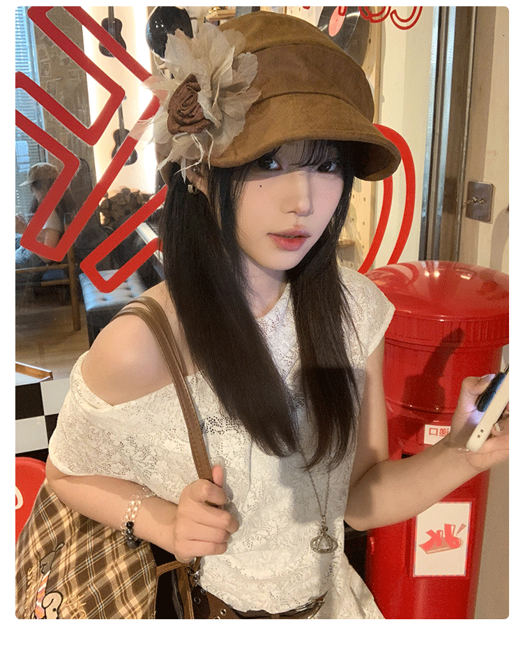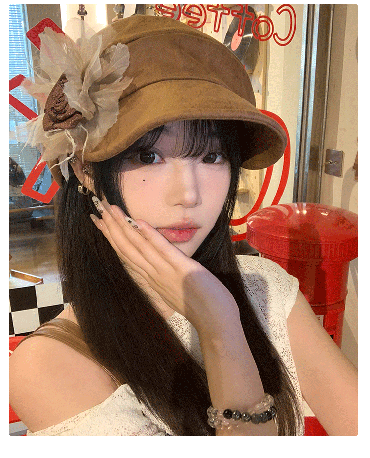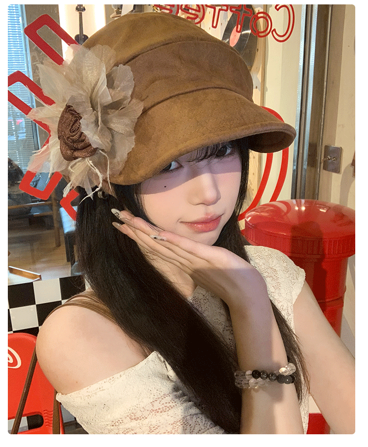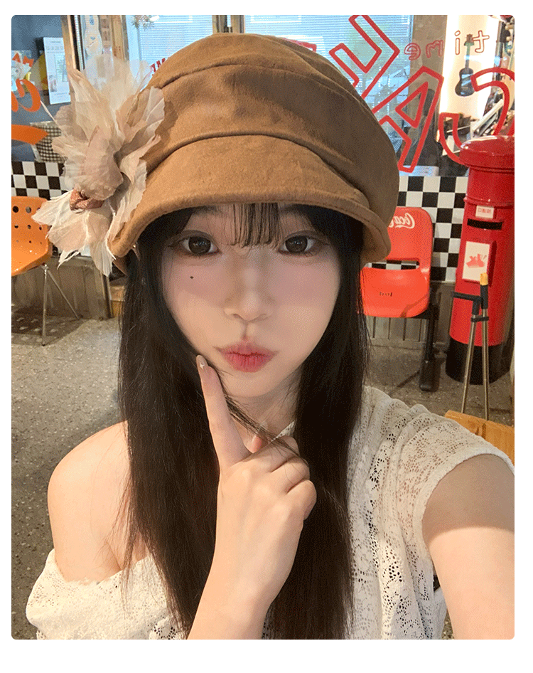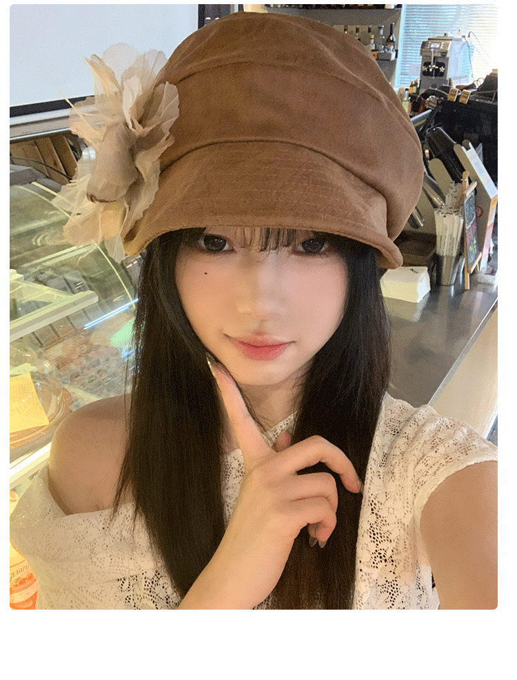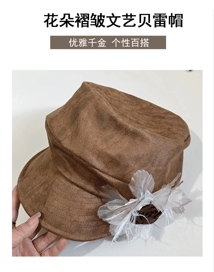 批发韩国2025年早秋新款小众花朵褶皱云朵贝雷帽文艺显脸小画家帽