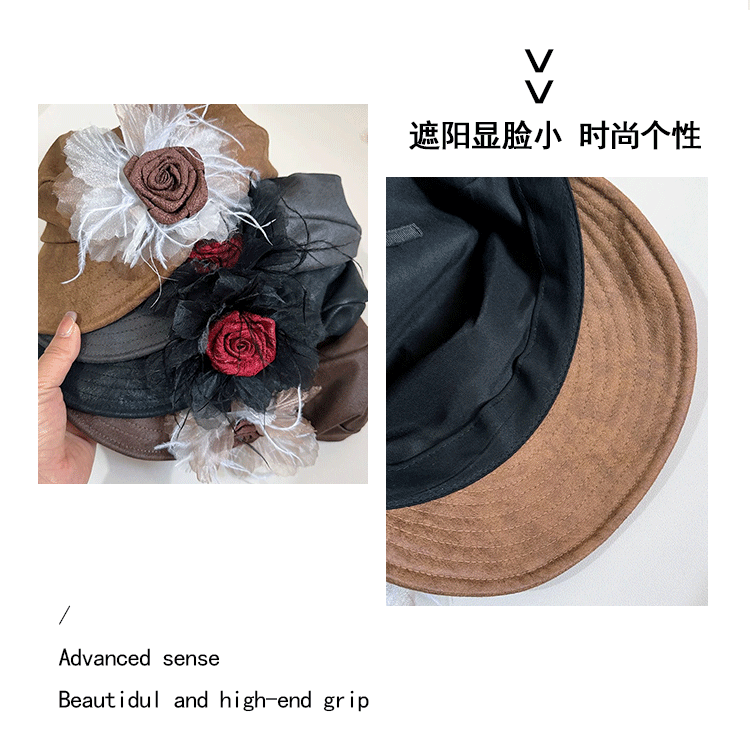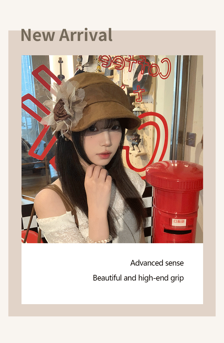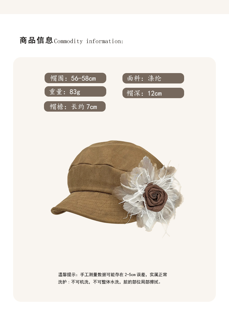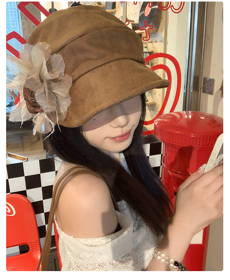 日系复古褶皱花朵贝雷帽子女春秋时尚文艺画家八角帽报童帽显脸小