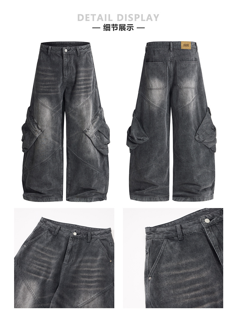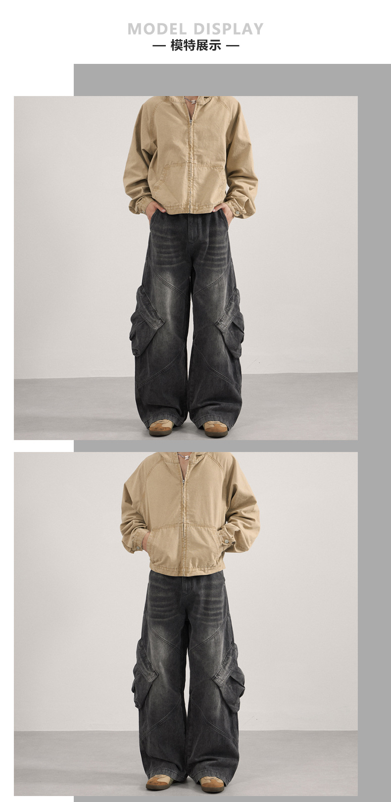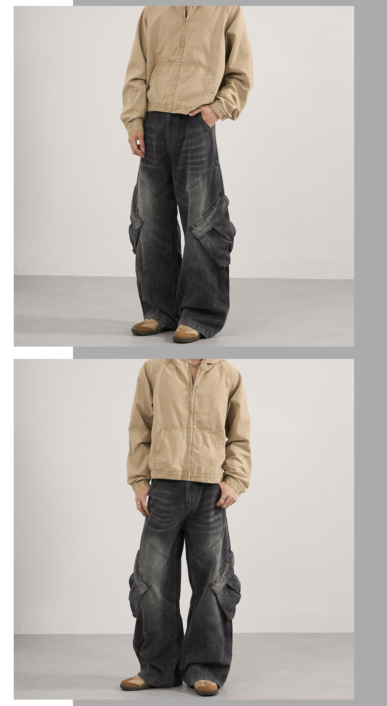 JIAMU美式复古高街baggy jeans男女直筒宽松拖地工装休闲牛仔裤