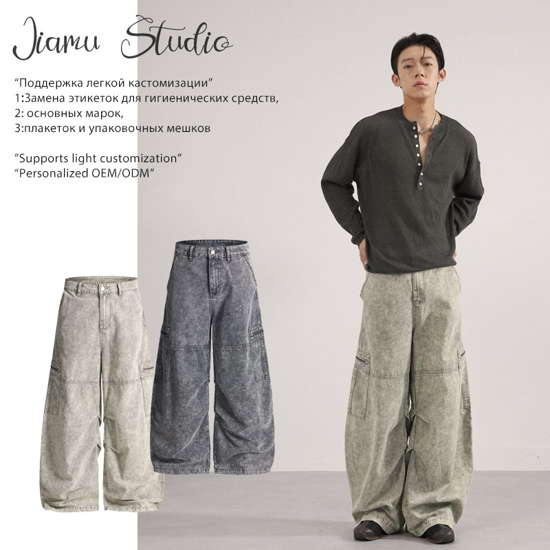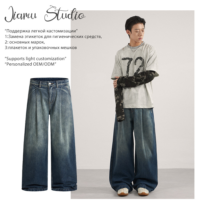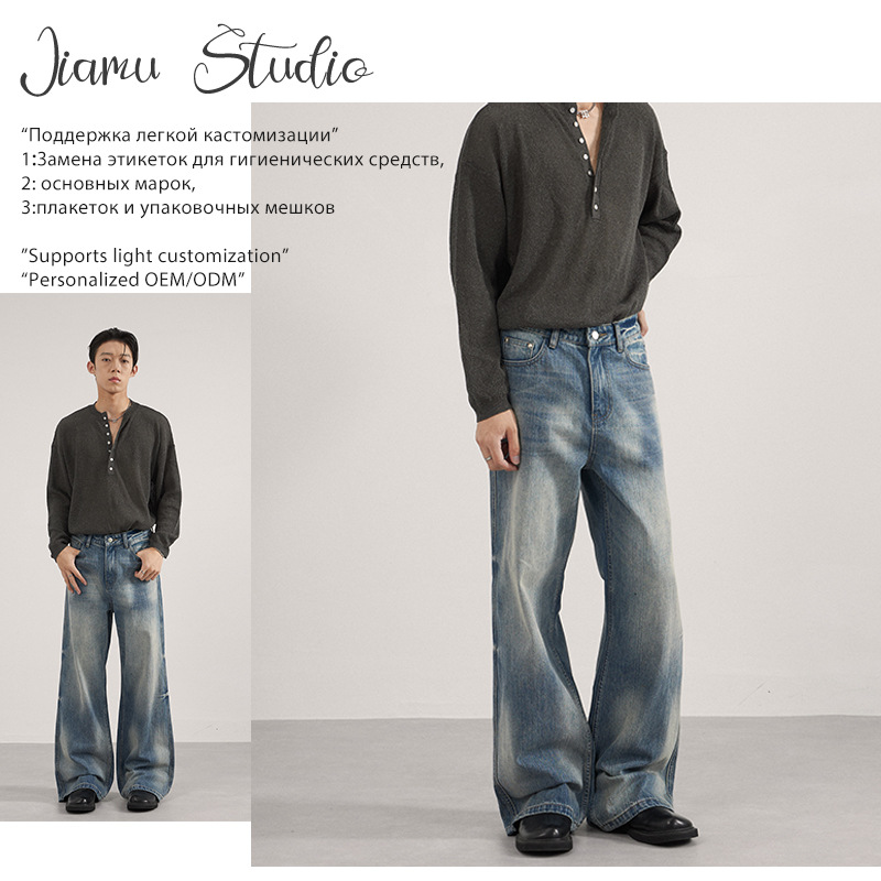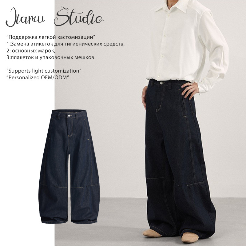 JIAMU 秋冬の主力モデルは、男女兼用のニュートラルなAタイプのストレートレッグルーズバギーマイクロワイドレッグジーンズです。