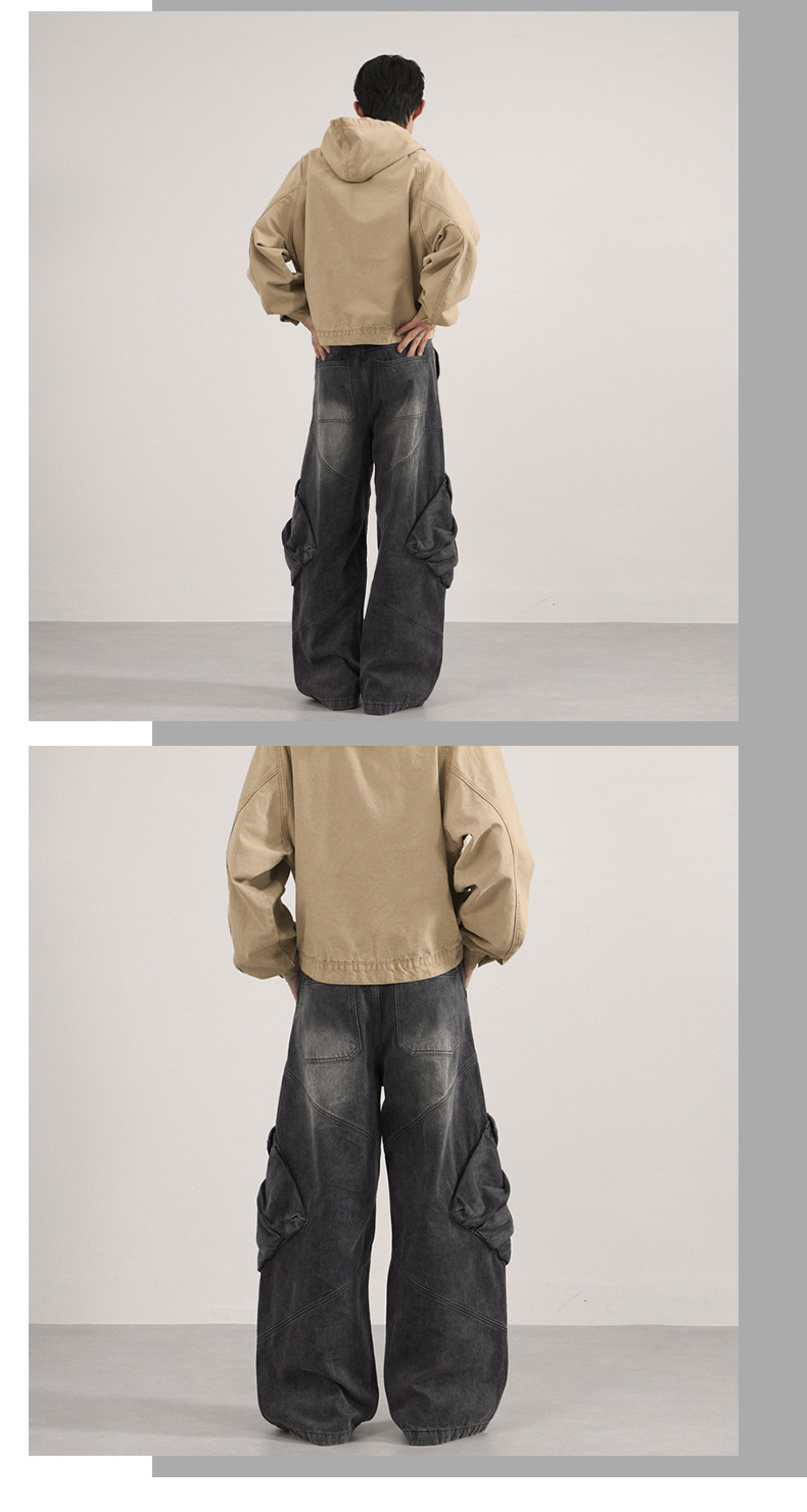 JIAMUアメリカンバギー復古工装ズボン男女潮牌郭形モップカジュアルズボン日系水洗いワイド脚