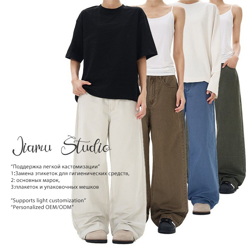 JIAMU六色アメリカンバギージーンズ、メイラードデニム、男女兼用カジュアルルーズストレートワイドパンツ