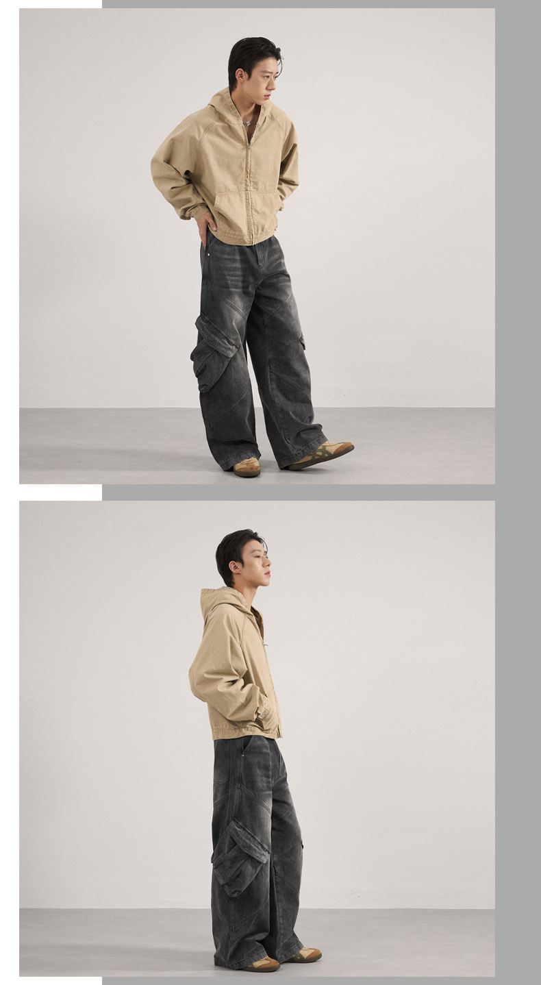 JIAMU拼接拉链多口袋baggy美式弯刀休闲裤男女宽松阔腿中性工装裤