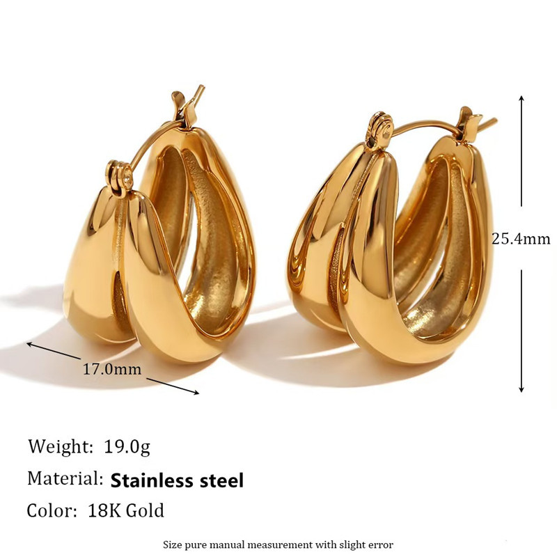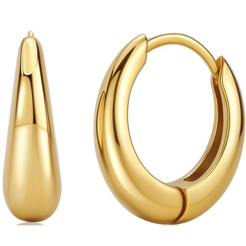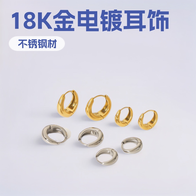 欧美跨境爆款光面开阔耳环耳圈不锈钢镀18K金素圈叠带ins耳饰