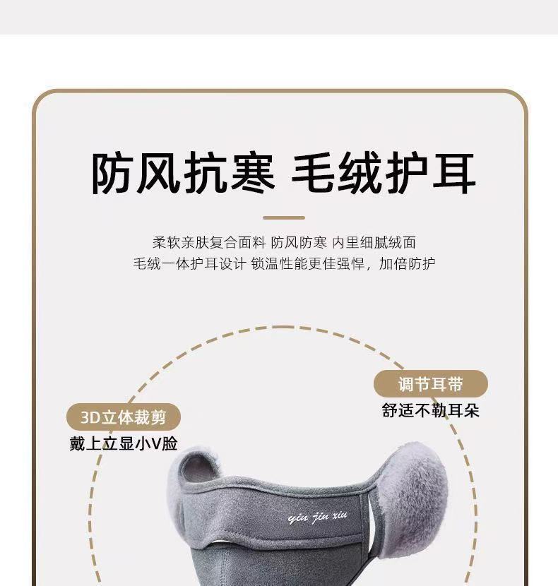 冬季保暖口罩女口耳一体高颜值挡风防寒加绒耳罩防冻骑行透气面罩