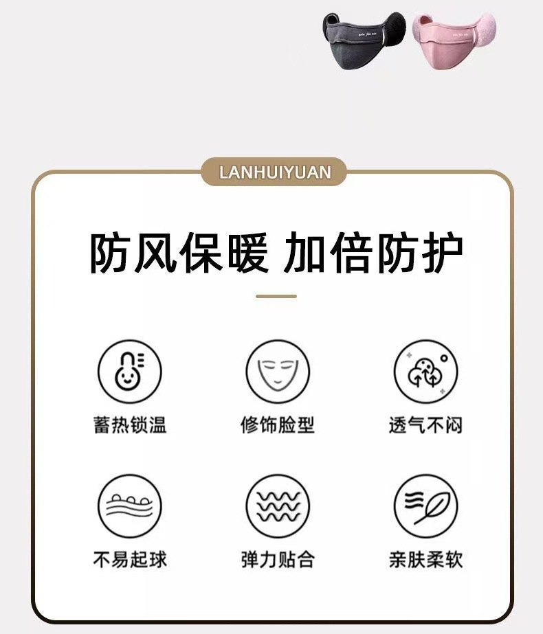 冬季男女护耳二合一骑行防寒护脸包耳防风骑行口罩学生加绒亲肤面