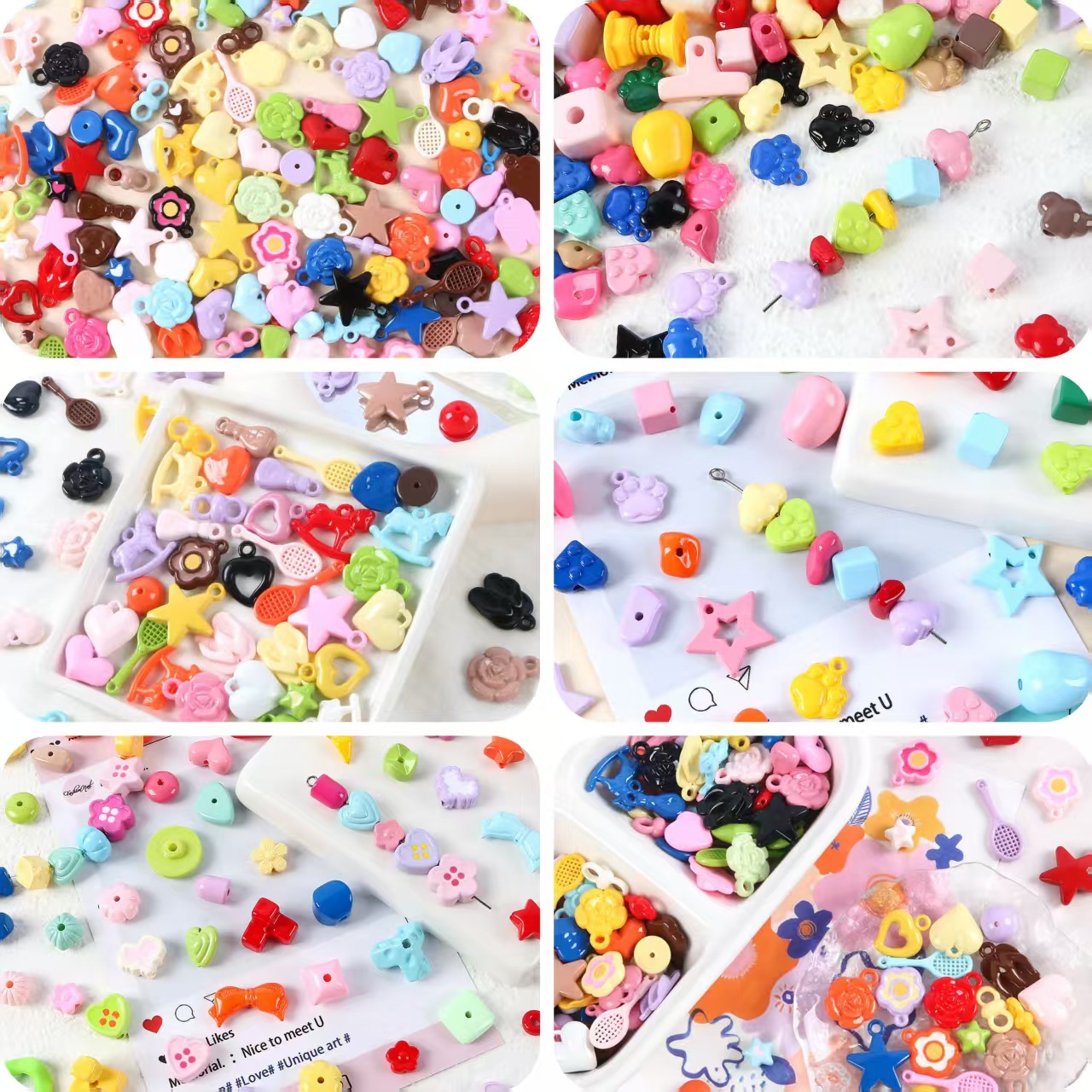 01#纽扣爱心珠,02#纽扣花朵珠,03#扁南瓜珠,04#拼接斜孔奶酪方块珠,05#磨砂波浪叠叠珠,06#亮面波浪叠叠珠,07#扁方珠,08#奶酪方块珠,09#圆心花朵珠,10#碎石异形角珠,11#切面方形角珠,12#重叠爱心珠,13#枕头方块珠,14#切面碎石异形珠,15#扁圆珠,16#条纹扁方珠,17#拼接斜孔方块珠,18#凹陷爱心珠,19#切面扁车轮珠,20#亮面波浪叠叠珠1,21#大号双通大孔圆形珠,22#正方珠,23#半圆珠,24#双通波浪大孔珠,25#绳结珠,26#椭圆珠,27#花蕊花朵珠,28#斜方菱形珠,29#千纸鹤隔珠,30#平面圆盘珠,31#药丸珠,32#大波浪雪花珠,33#小号双通大孔圆形珠,34#滴油像素双色爱心珠,35#小波浪雪花珠,36#亮面波浪叠叠珠2,37#蝴蝶结,38#五角星珠,39#碎石异形珠,40#黑白碎石异形角珠,41#螺丝钉珠,42#魔豆珠,43#夹子珠,44#大方珠,45#小方珠,46#云朵珠,47#镂空双通星星珠,48#积木爱心珠,49#碎石珠,50#猫爪珠,51#桃心气泡,52#镂空爱心吊坠,53#双色爱心五角星,54#8字扣,55#不规则爱心,56#人字拖吊坠,57# 蛋黄小花朵吊坠,58#钱袋子吊坠,59#羽毛球拍吊坠,60#玫瑰花吊坠,61#半球串珠,62#五角星吊坠,63#牧马人吊坠,64#屁桃爱心,66#小雨伞吊珠,67#相片印花正方形串珠,68#亮银樱花点油花朵珠,69#亮银花朵珠,70#KT猫小扇子串珠,71#开口扭条扣,72#波浪六瓣花串珠,73#不规则花朵串珠,74#双色五角星串珠,75#透明滴油小花串珠,76#滴油小樱花串珠,77#珍珠花朵串珠,78#镂空花朵吊珠,79#小号五角星串珠,80#大孔圆珠,81#八字扣串珠,82#小圆三通串珠,83#南瓜串珠,84#五瓣花串珠,85#小咖啡豆串珠,86#三通五花瓣吊珠,87#圆柱管珠,88#小号镂空五瓣花吊珠