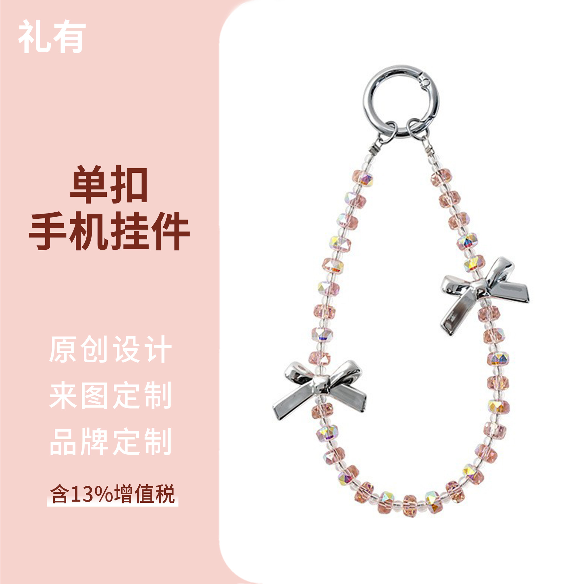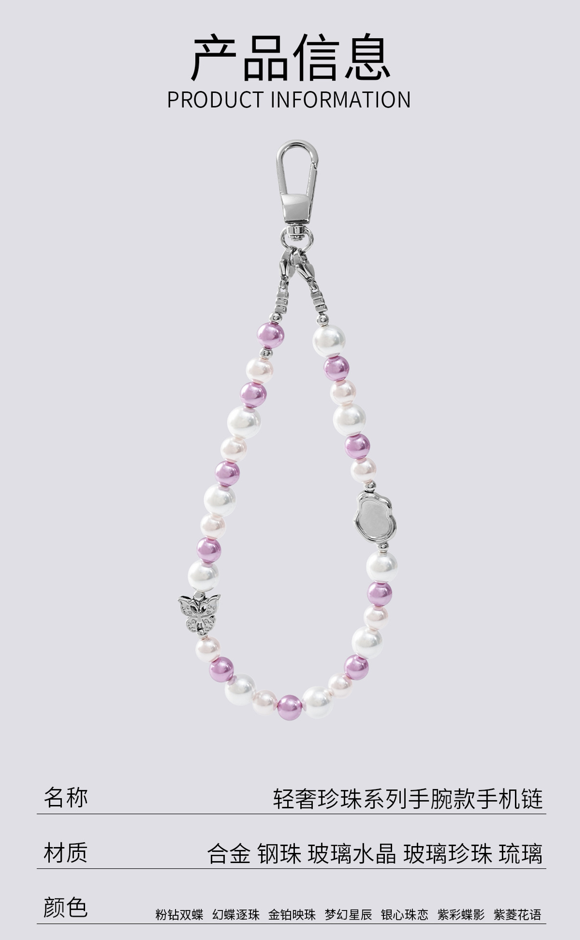 新品手作短款串珠水晶珍珠手机挂绳精美链条配件手腕绳蝴蝶挂饰女