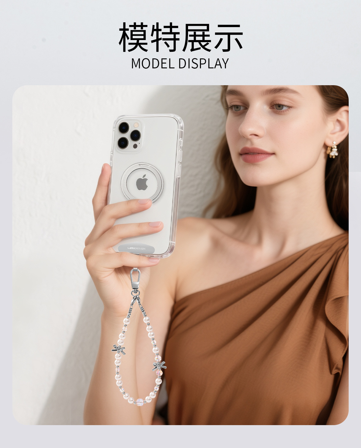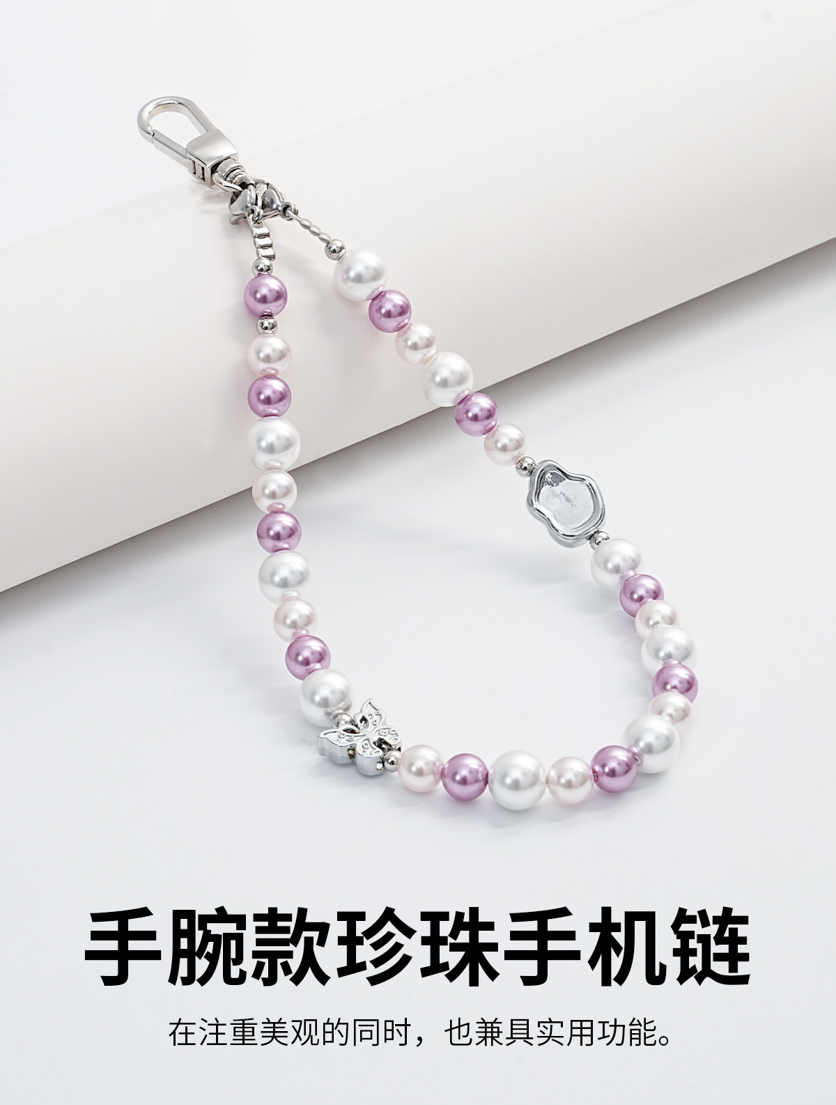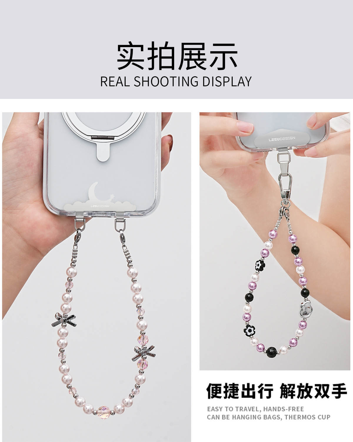 オリジナルパールスマートフォンチェーン高级感チェーンショートタイプ手持ちリストバンド携帯ストラップ紛失防止手首ロープZKF14