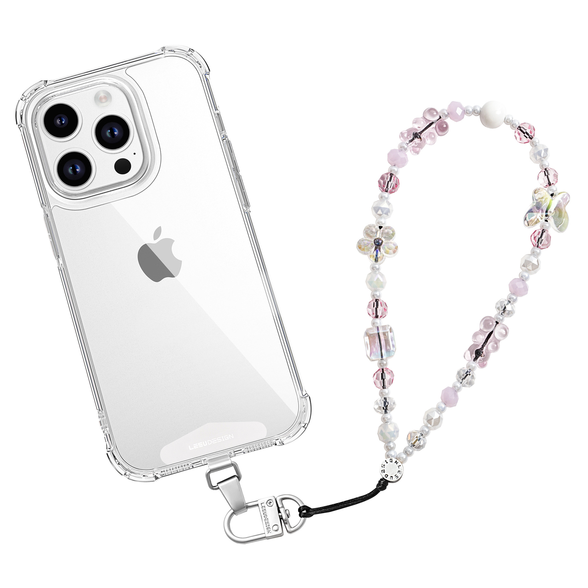 手作ビーズ携帯チェーンピンク水晶手首チェーン携帯リストバンド紛失防止女性金工場卸売りZKD6