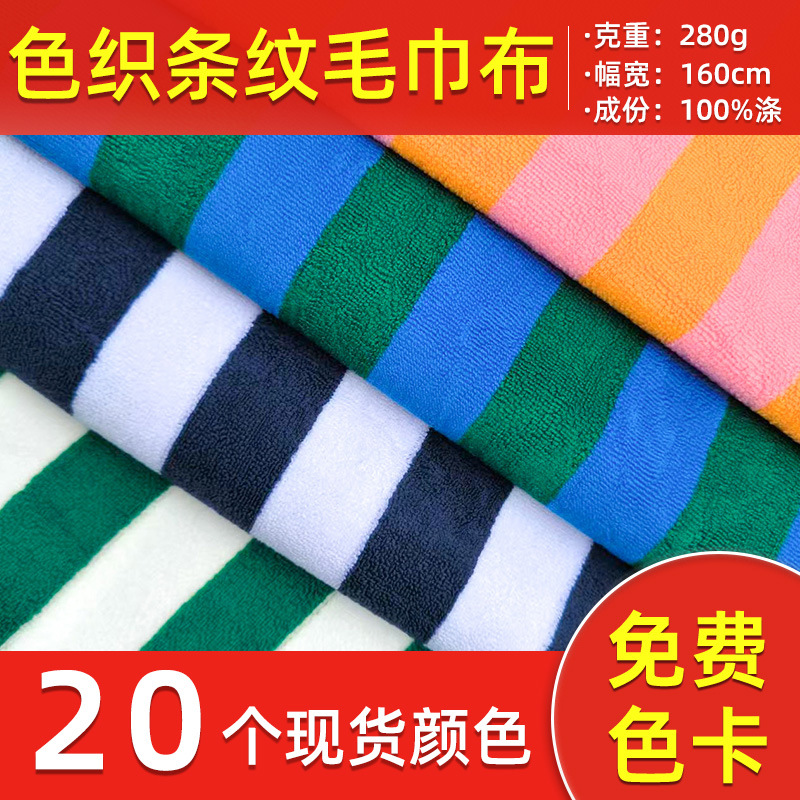 条纹毛巾布条纹布色织面料布彩条毛巾面料布料毛巾料经编面料玩具