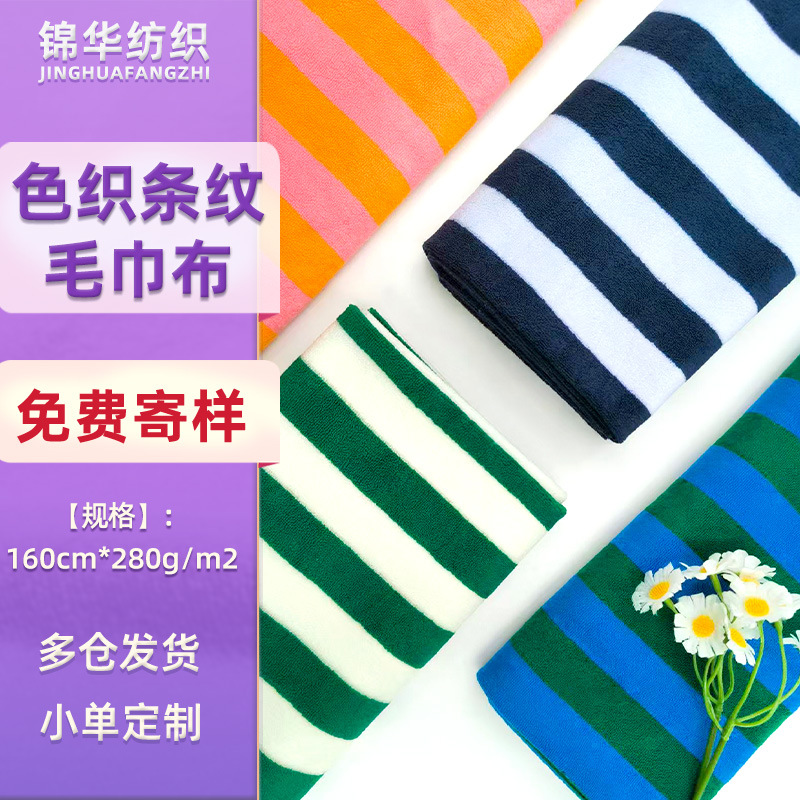 全涤色织条纹毛巾布面料沙滩巾彩条毛巾布服装鞋帽条纹布毛巾布料