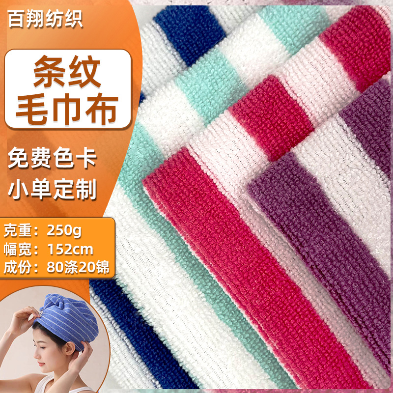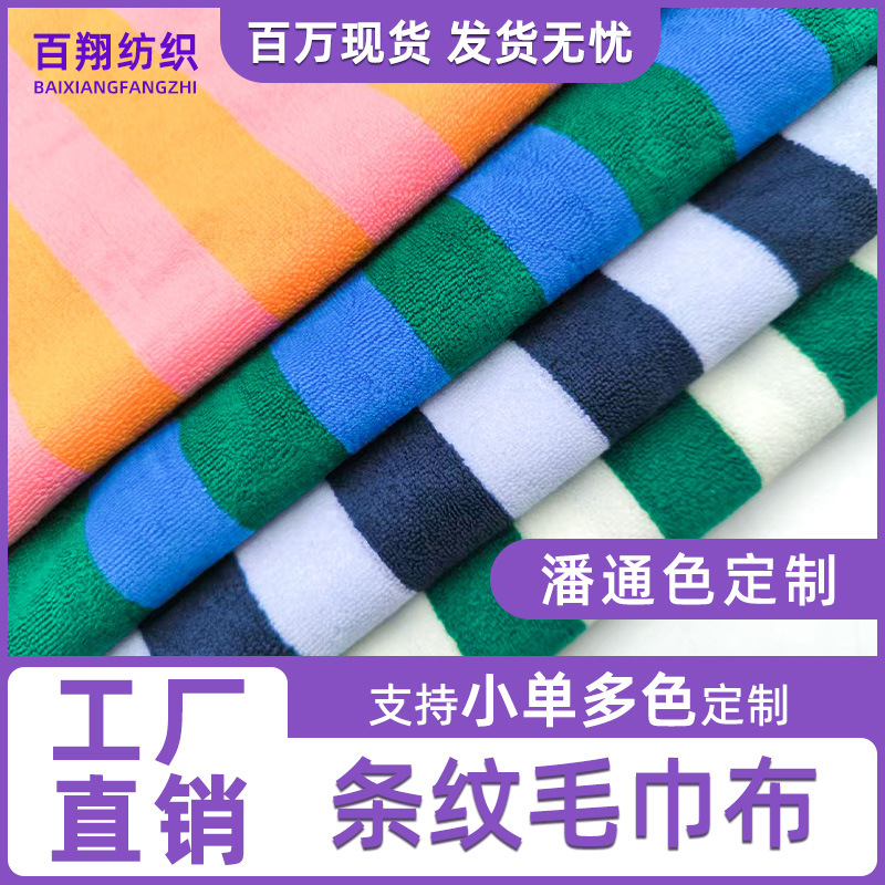现货色织条纹毛巾布料全涤毛圈CVC超细纤维面料彩条服装包包鞋材