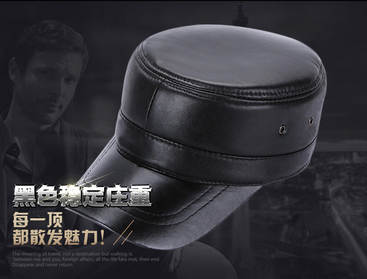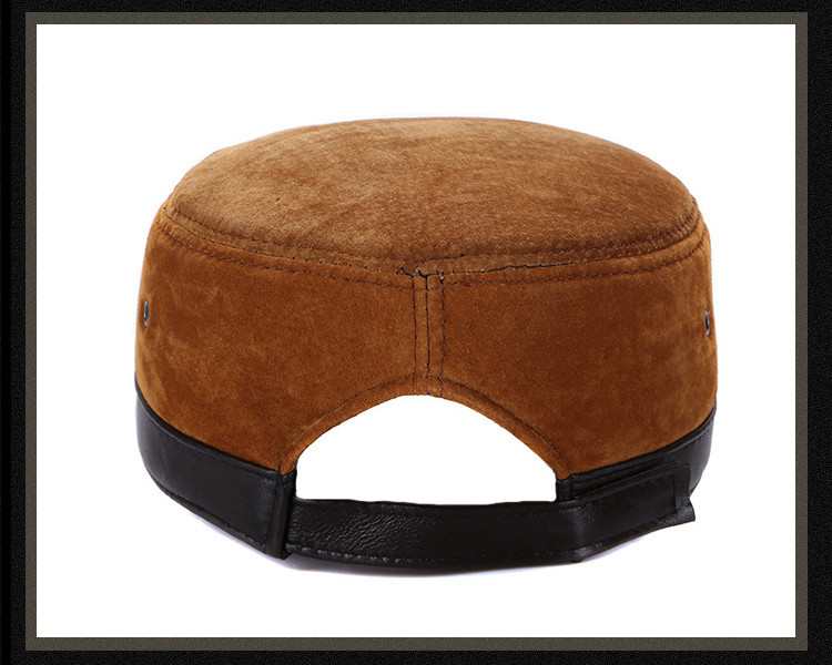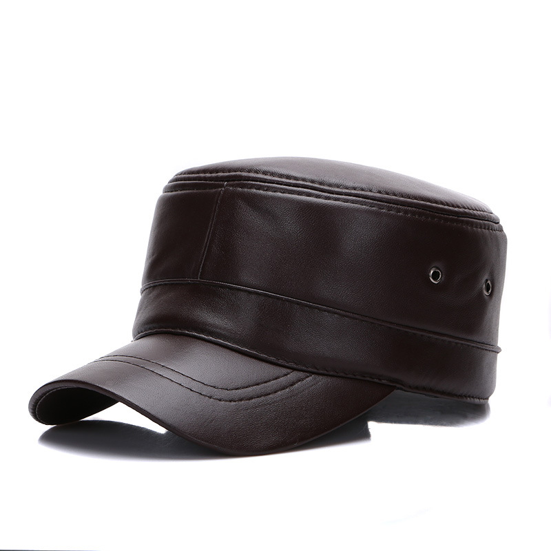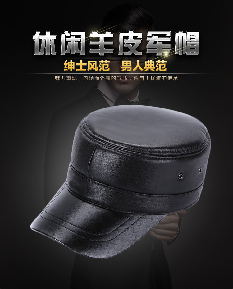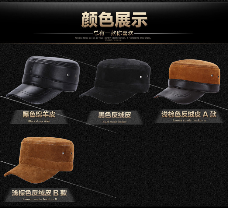 海宁百搭真皮绵羊皮平顶帽秋冬季男女可调节鸭舌帽子军帽厂家直销