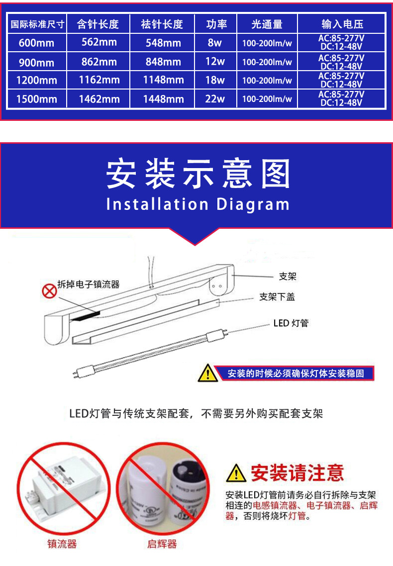 高光効率T8LEDランプ高輝度不動産車庫商超工場省エネ改造EMC契約エネルギー管理