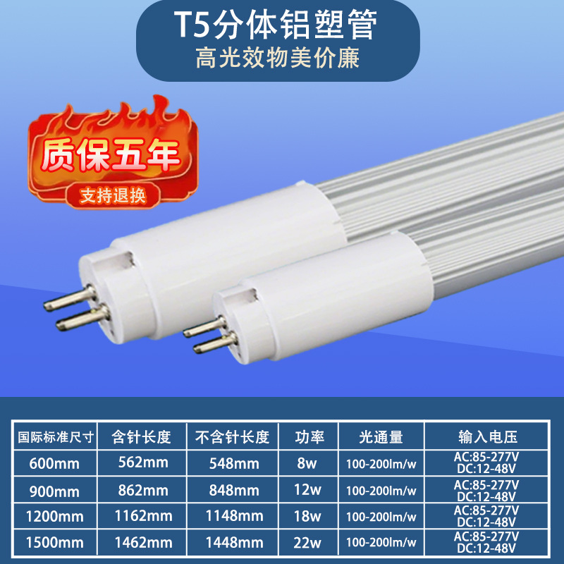 T5铝塑分体LED灯管1.2米高亮一体化日光灯管玻璃全塑内置驱动
